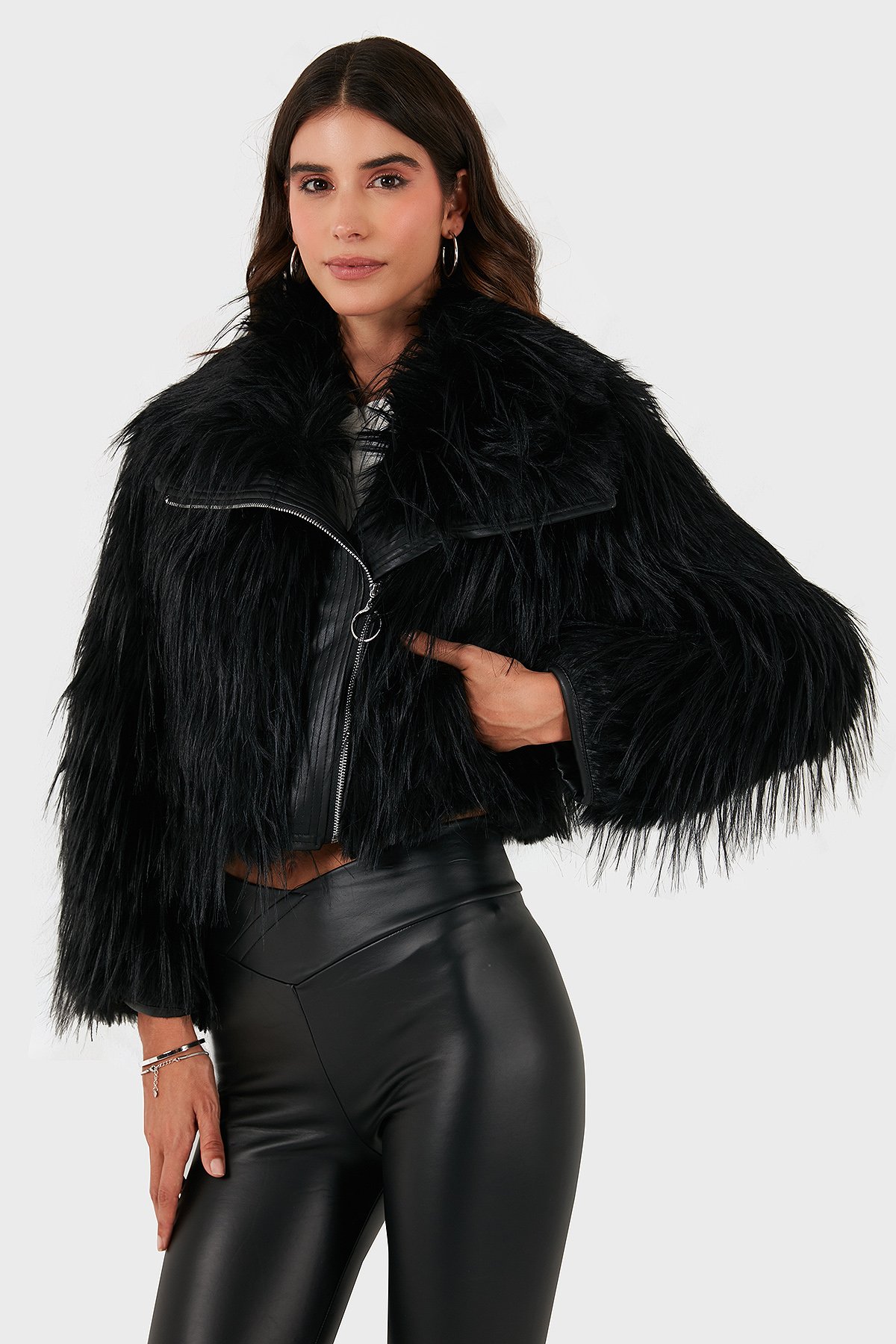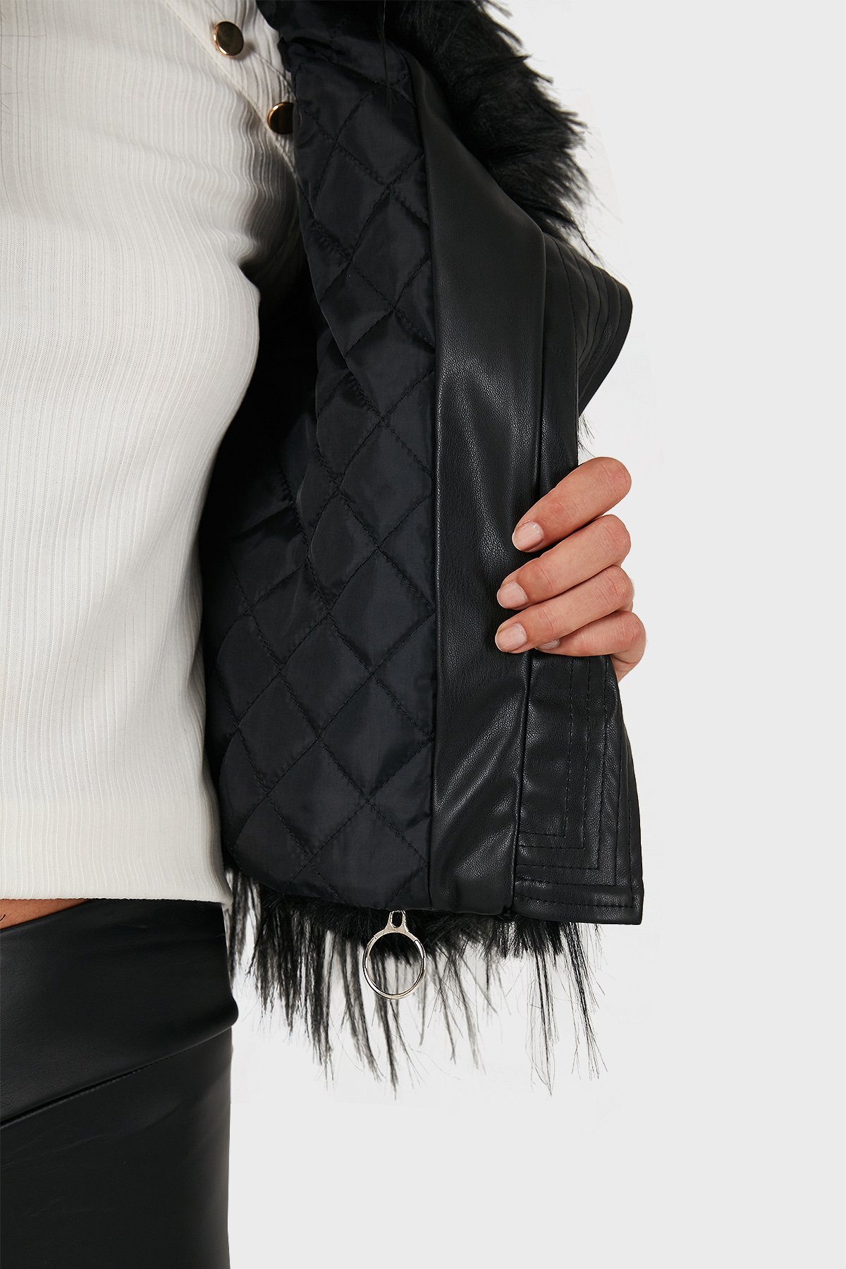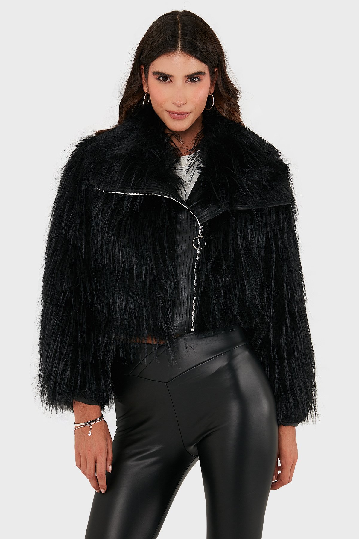 Regular Fit Ceket Yaka Fermuarlı Bayan Kürk 68912367948PR116 SİYAH