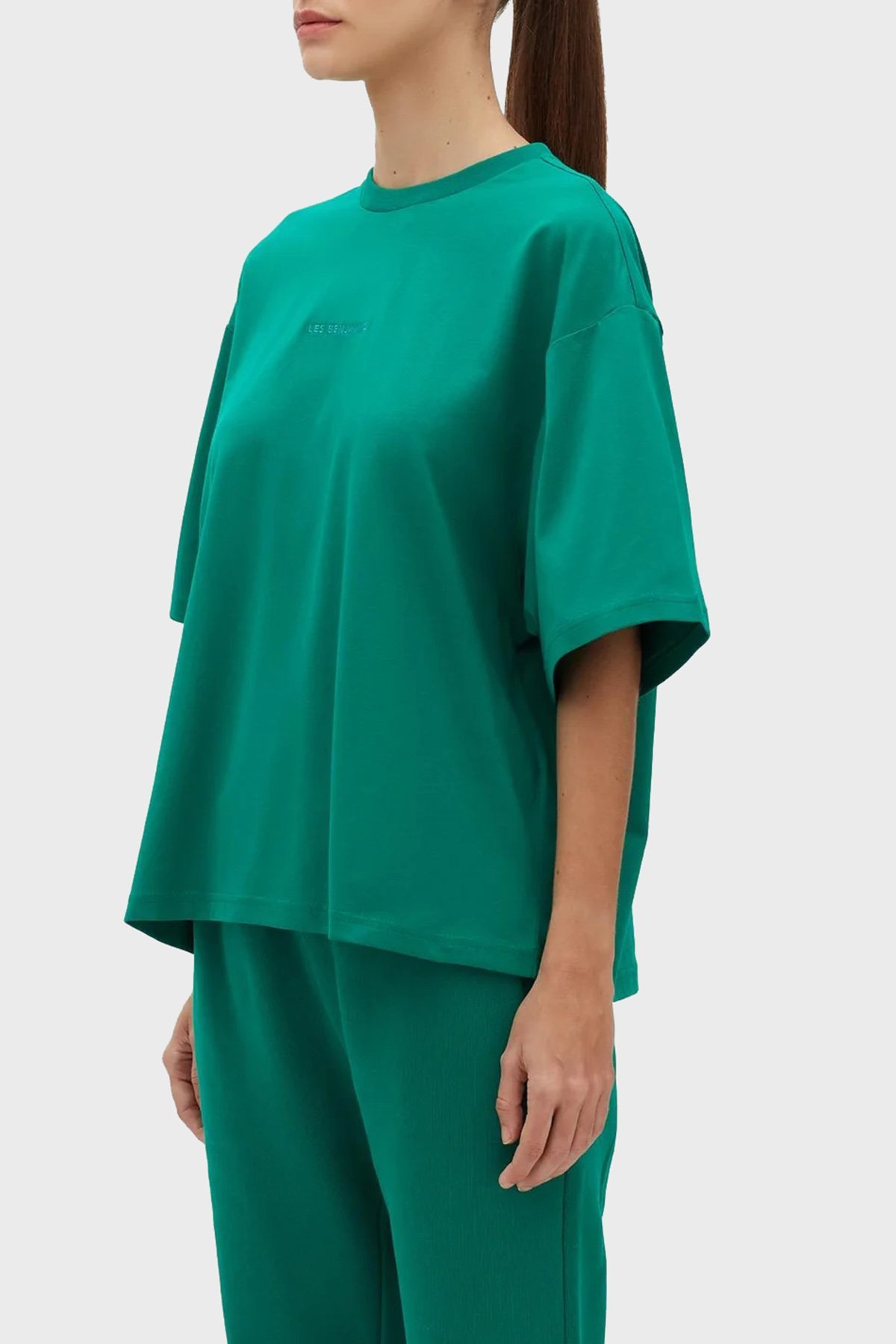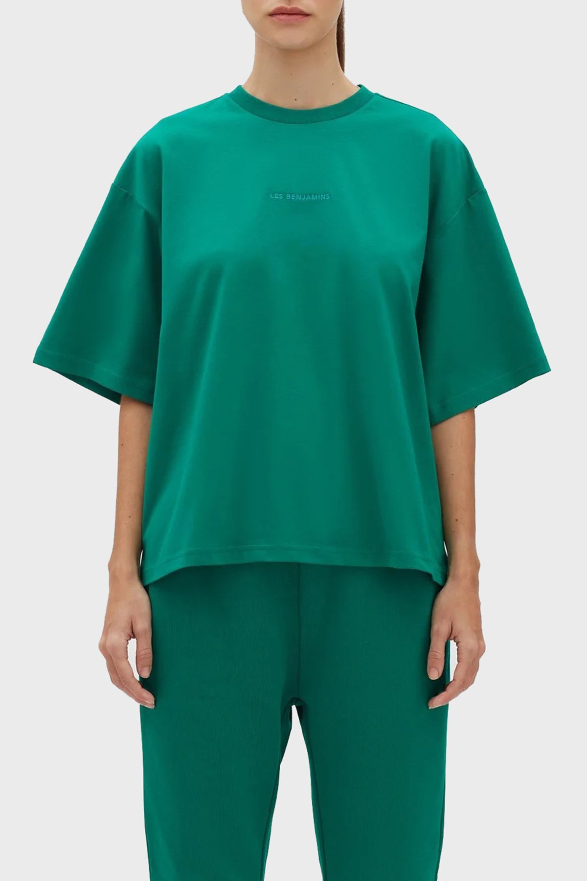 % 100 Pamuk Oversize Bisiklet Yaka Cropped Bayan T Shirt LB23SSESSFUOT-301 YEŞİL