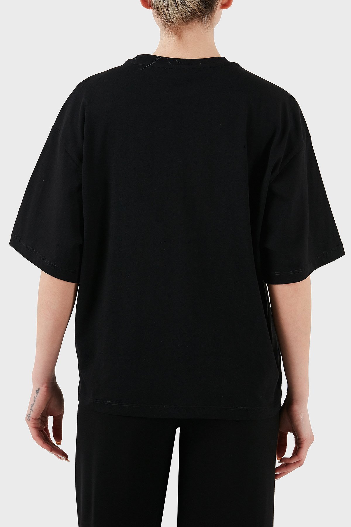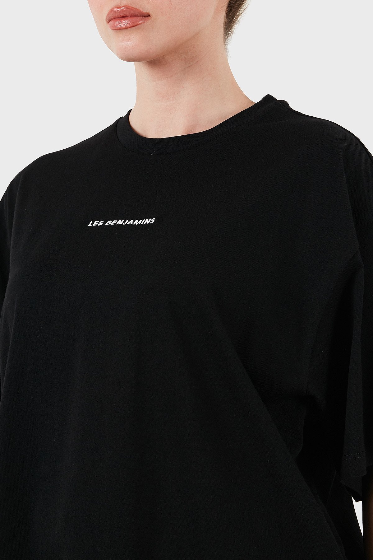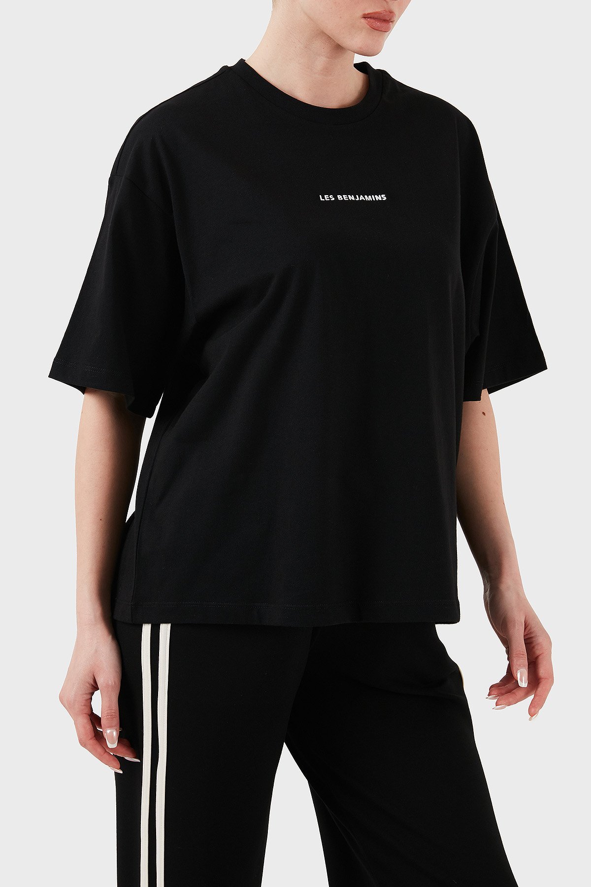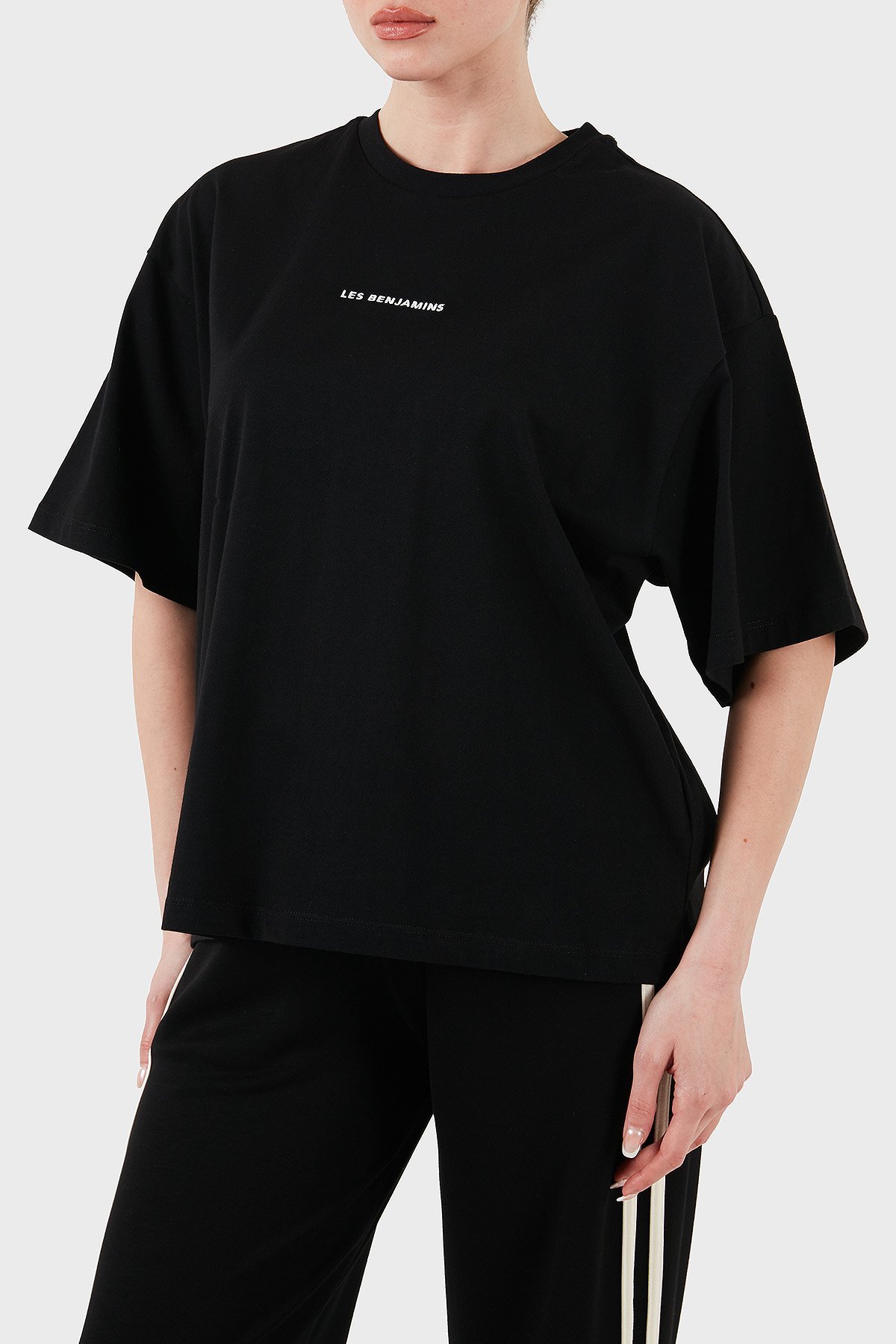 % 100 Pamuk Oversize Fit Bisiklet Yaka Logolu Bayan T Shirt LBNOOSESSFUTS-307 SİYAH
