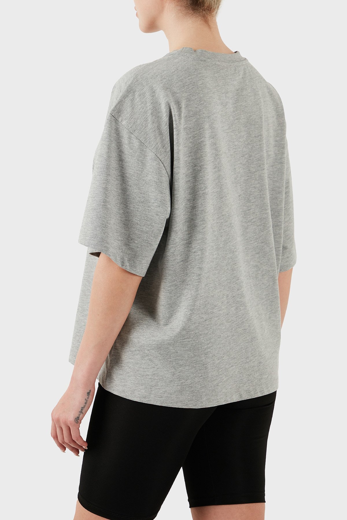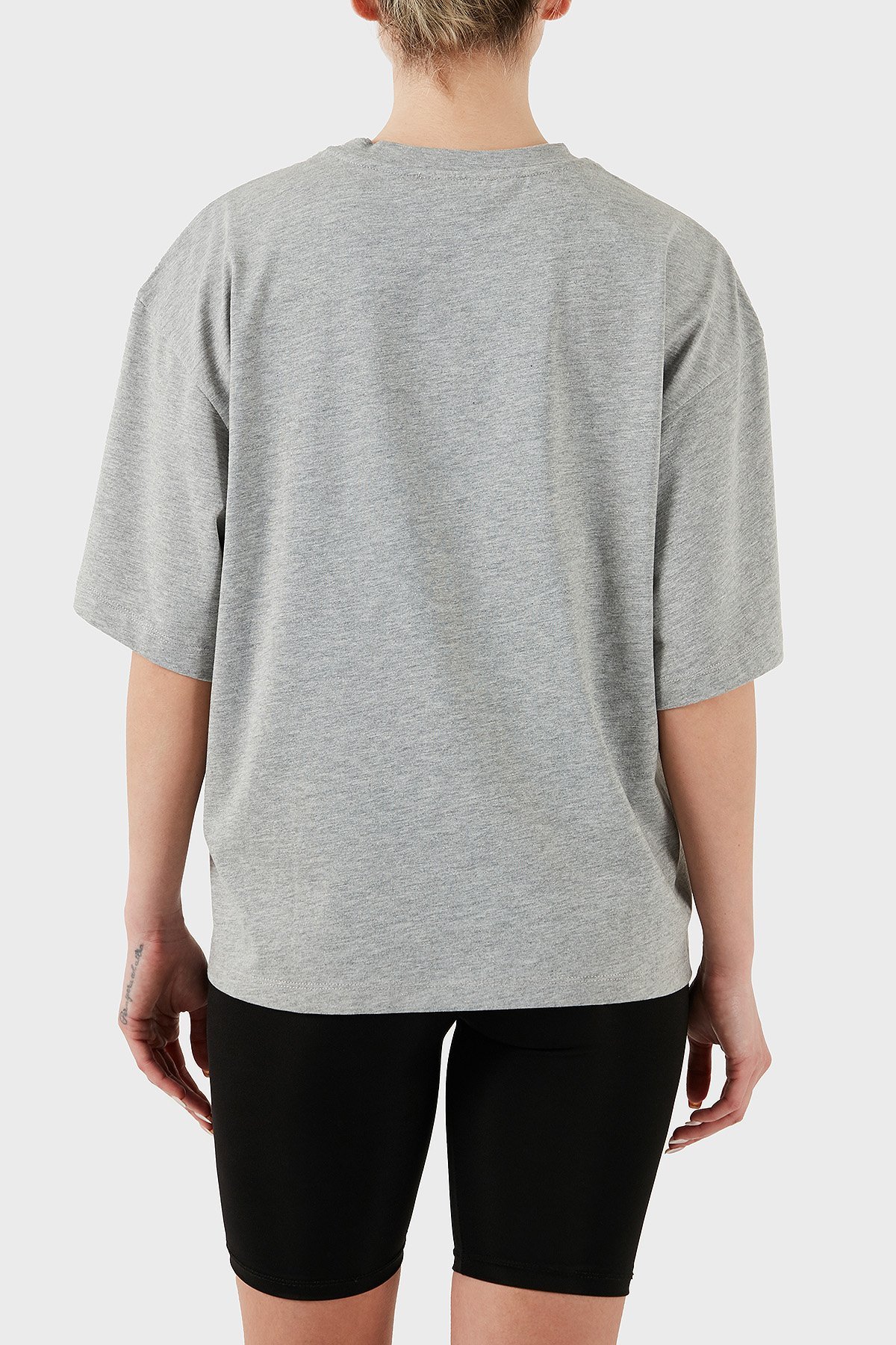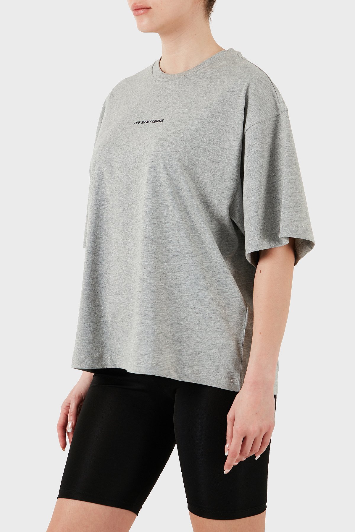 % 100 Pamuk Oversize Fit Bisiklet Yaka Logolu Bayan T Shirt LBNOOSESSFUTS-308 GRİ MELANJ