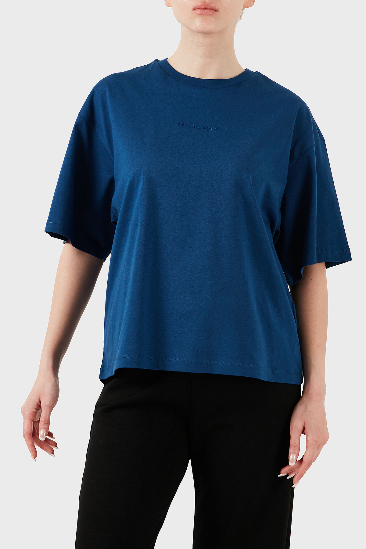 % 100 Pamuk Oversize Fit Bisiklet Yaka Logolu Bayan T Shirt LBNOOSESSFUTS-309 LACİVERT