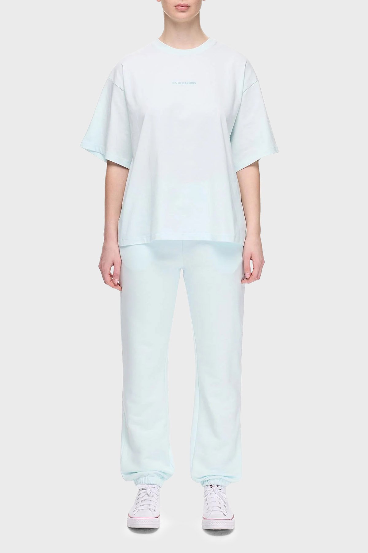 % 100 Pamuk Oversize Fit Bisiklet Yaka Logolu Bayan T Shirt LBNOOSESSFUTS-311 BEBE MAVİ