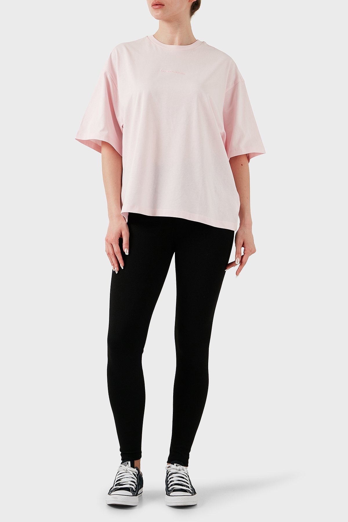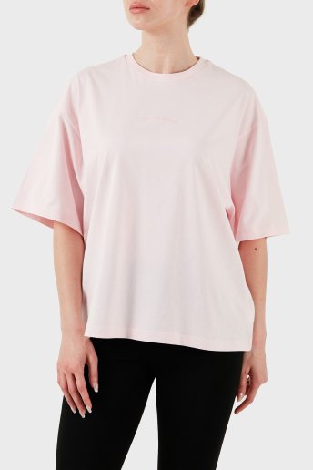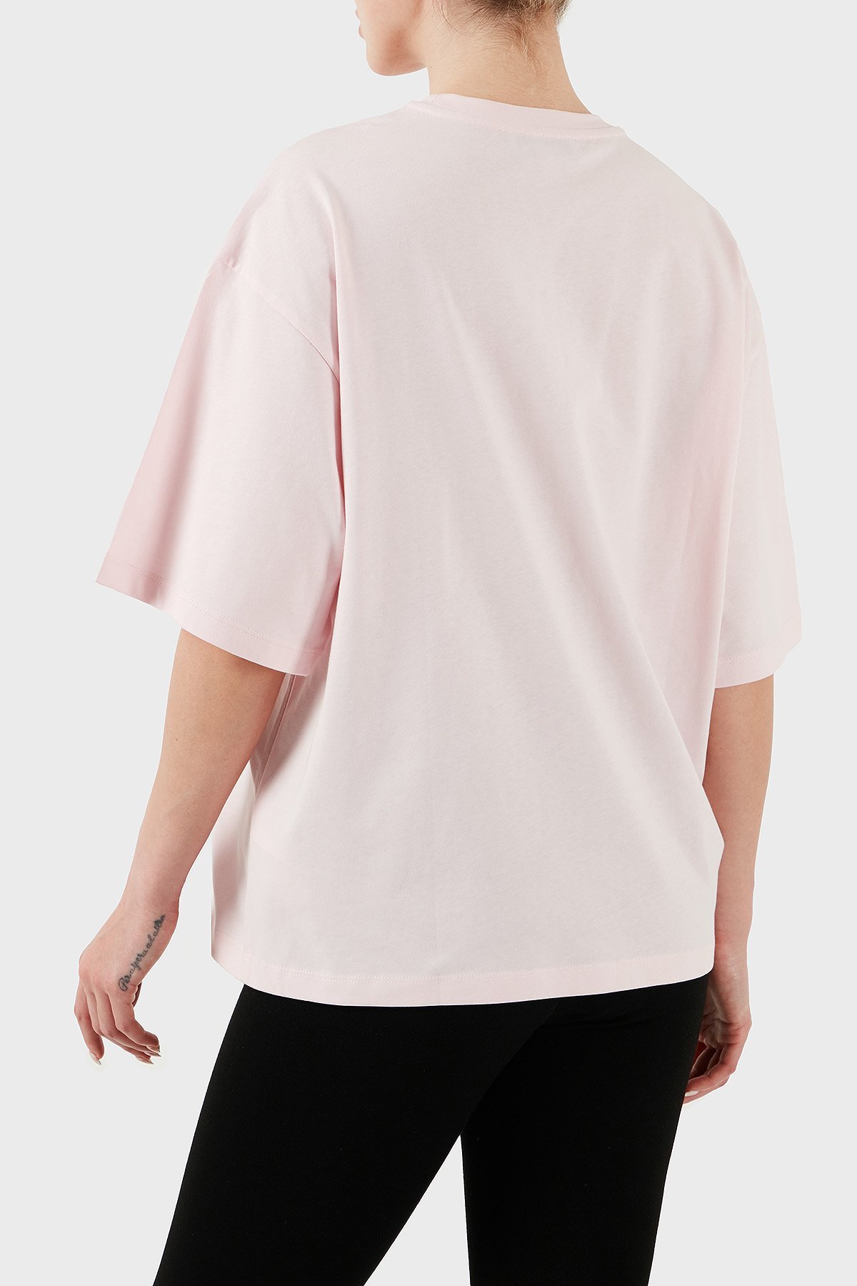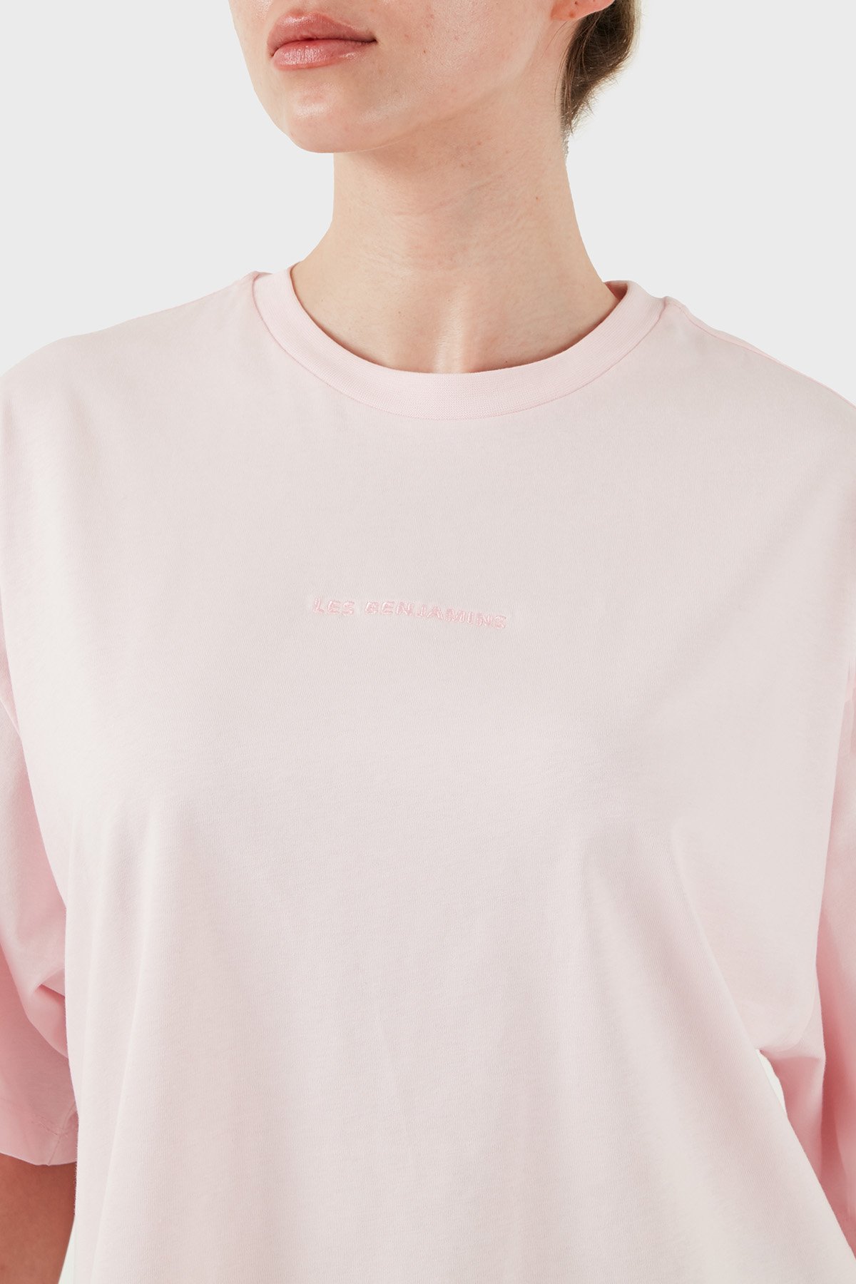 % 100 Pamuk Oversize Fit Bisiklet Yaka Logolu Bayan T Shirt LBNOOSESSFUTS-312 AÇIK PEMBE