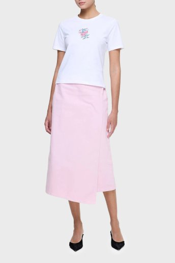 Baskılı % 100 Pamuk Regular Fit Bisiklet Yaka Bayan T Shirt LB25SSUNLFUTS-005 BEYAZ