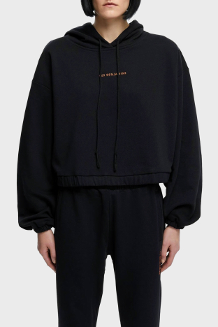 Baskılı Kapüşonlu % 100 Pamuk Bayan Sweat LB21SSCORFUHD-001 SİYAH