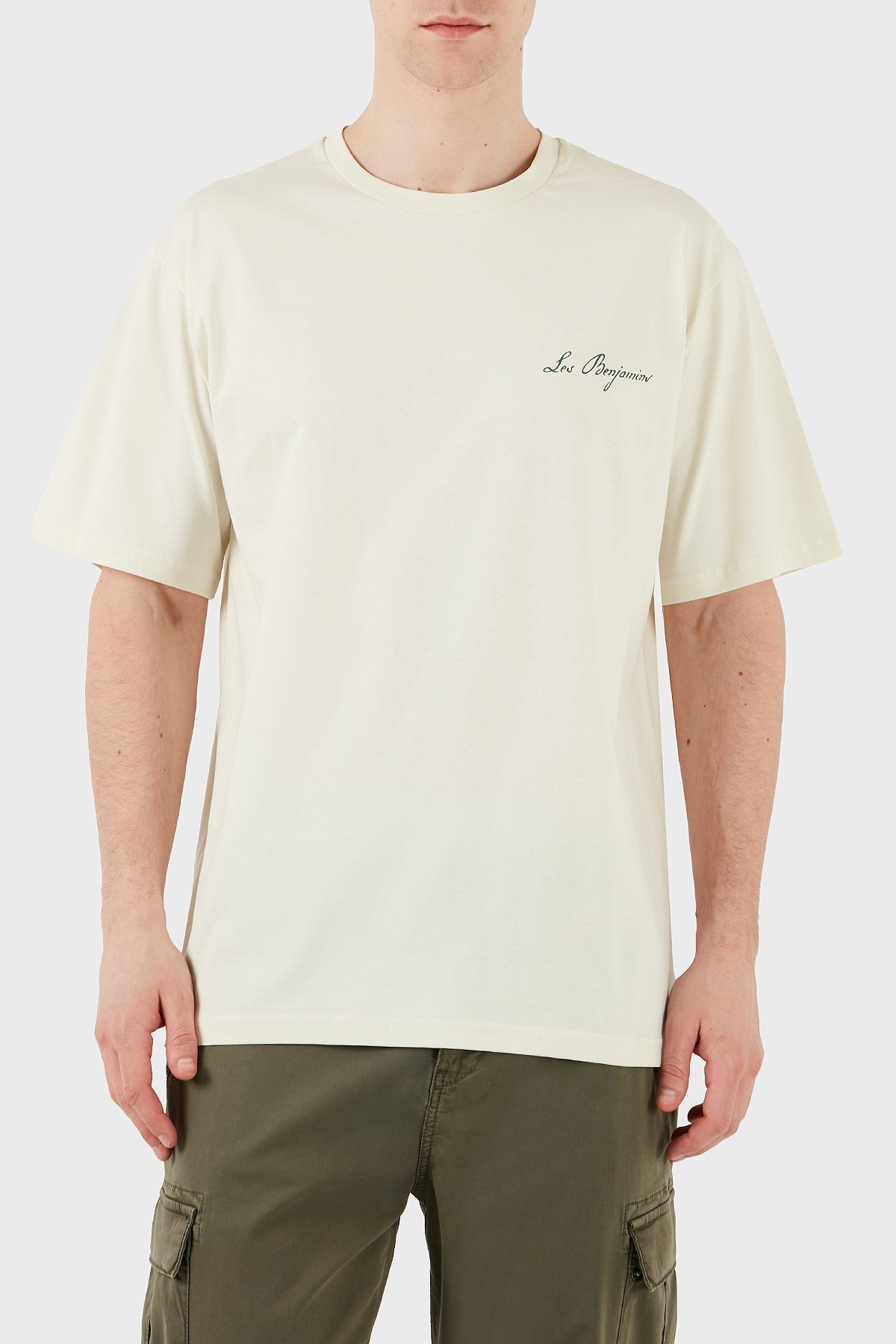 Baskılı Relaxed Fit Pamuklu Bisiklet Yaka Erkek T Shirt LB25SSUNLMUTS-025 EKRU