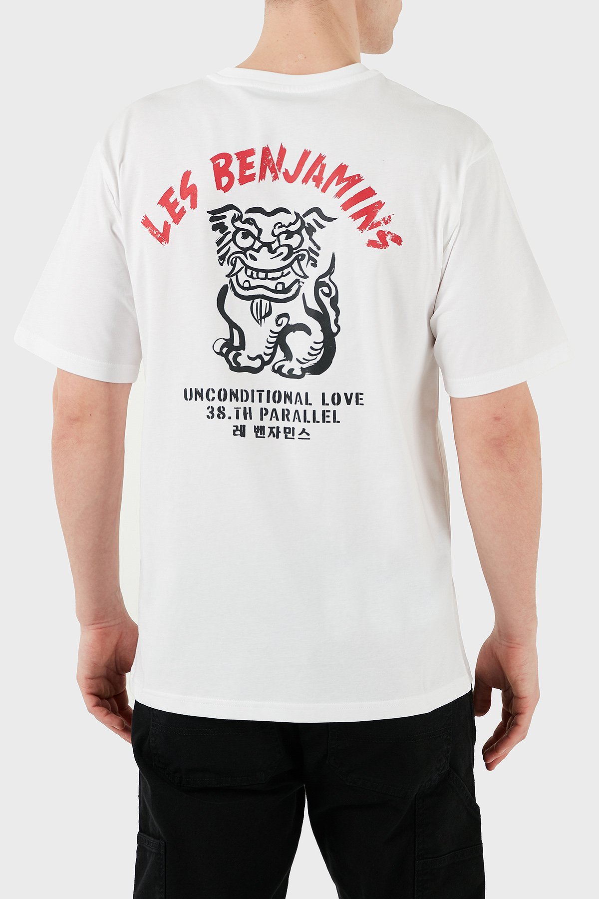 Baskılı Relaxed Fit Pamuklu Bisiklet Yaka Erkek T Shirt LB25SSUNLMUTS-031 BEYAZ