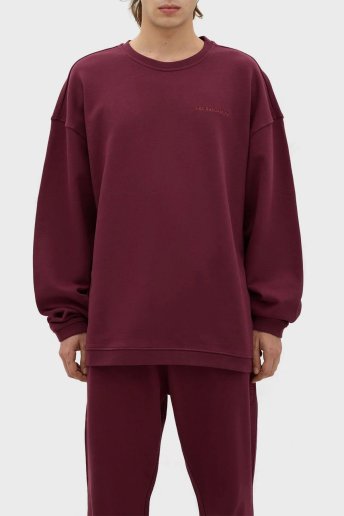 Bisiklet Yaka % 100 Pamuk Relaxed Fit Erkek Sweat LB23FWESSMUSW-301 BORDO