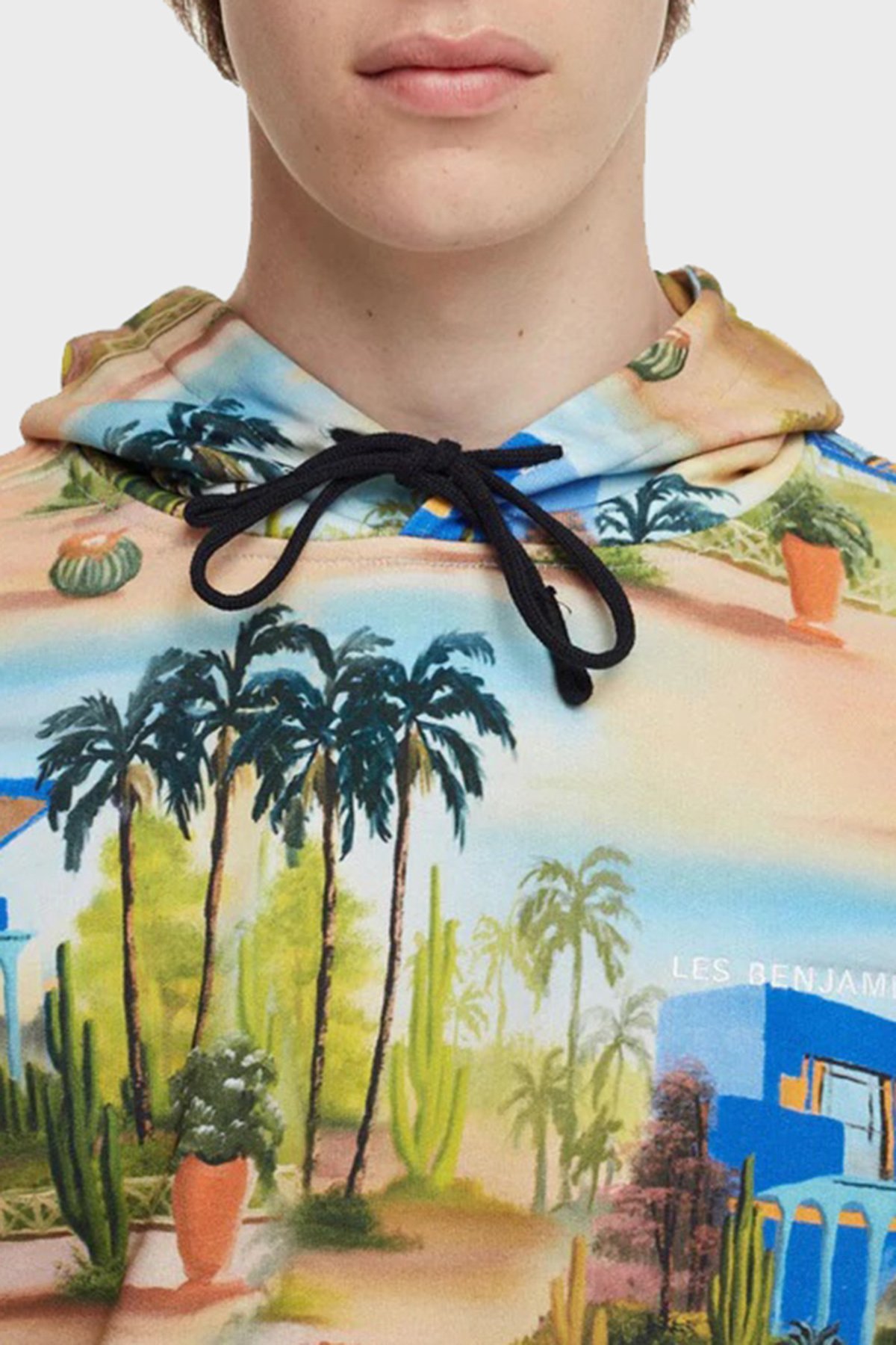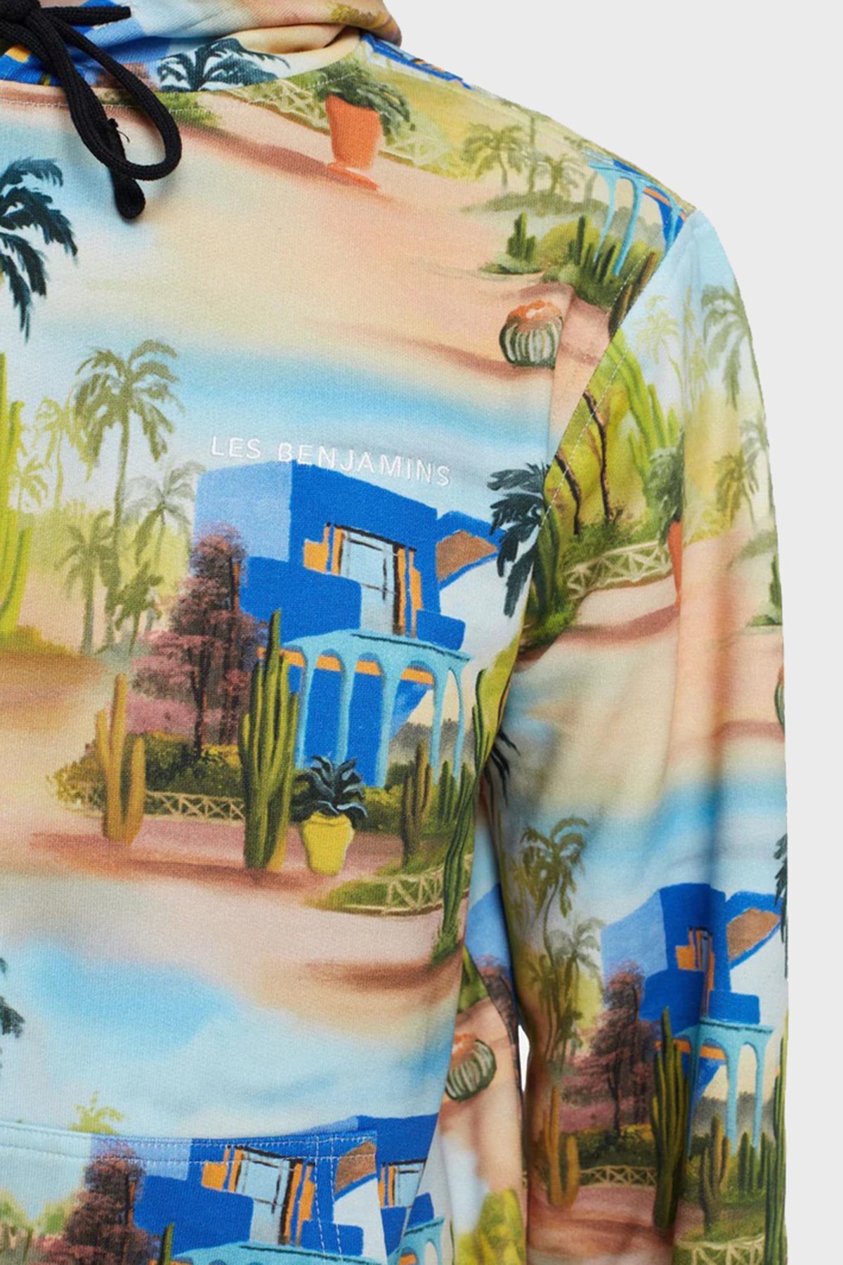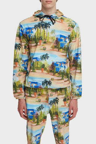 Desenli Regular Fit Kapüşonlu Kanguru Cepli % 100 Pamuk Erkek Sweat LB22SSTMJMUHD-004 MAVİ-BEJ