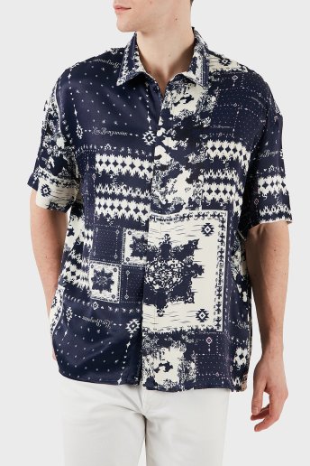 Desenli Regular Fit Kısa Kollu Erkek Gömlek LB25SSUNLMUSH-008 LACİVERT