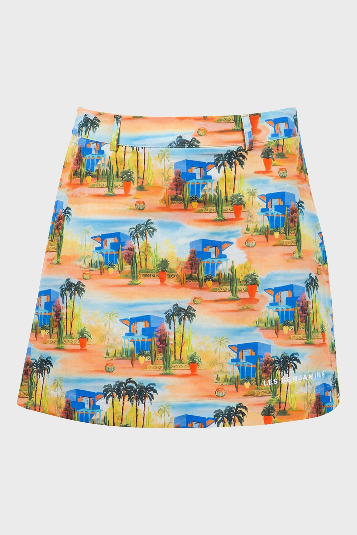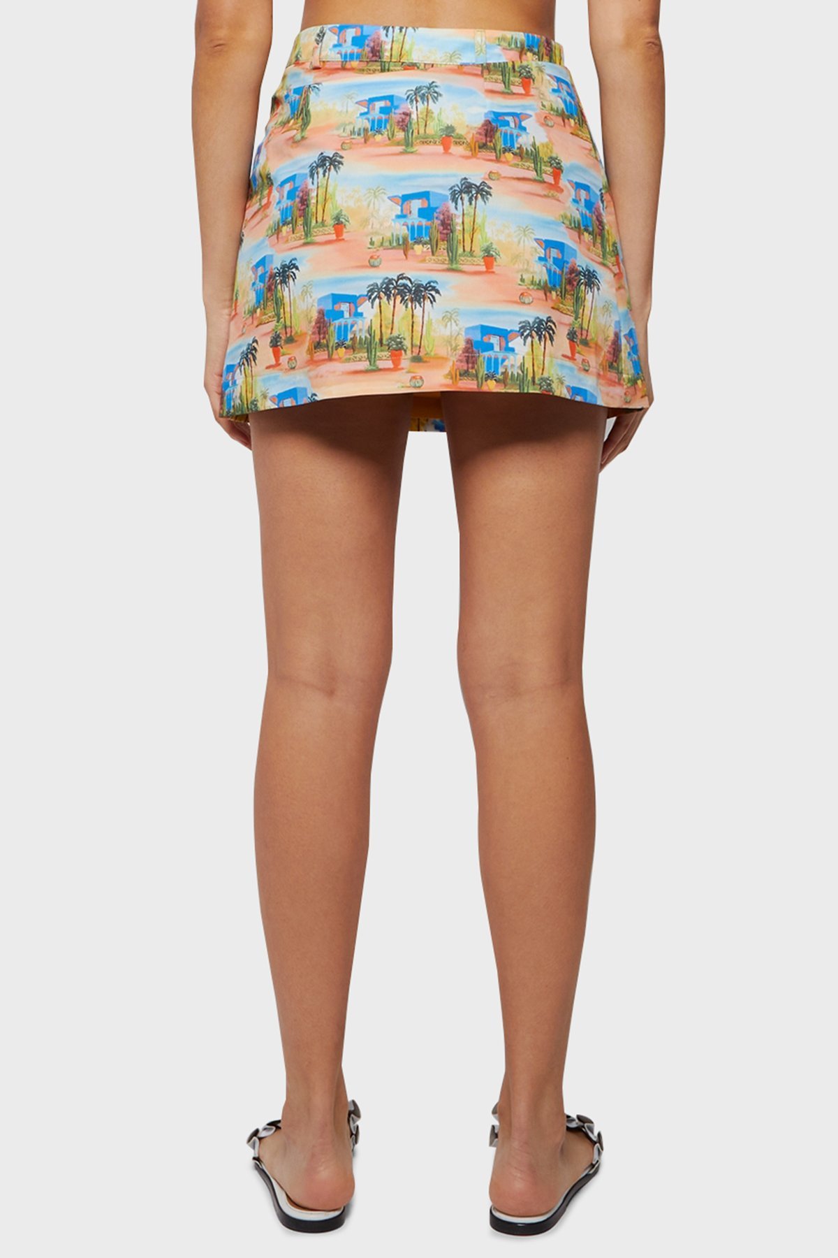 Elastik Bel Bantlı Tropikal Baskılı Bayan Etek LB22SSTMJFUSK-003 MAVİ-YEŞİL