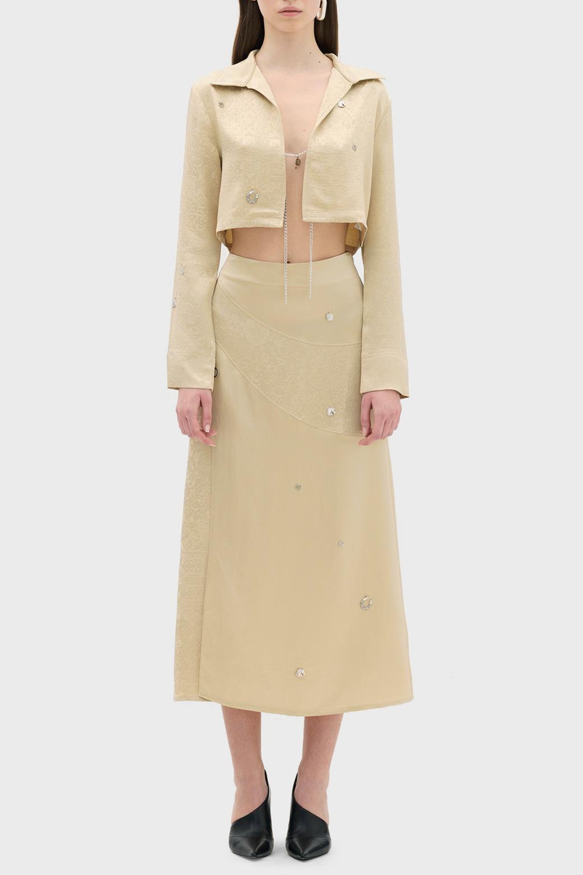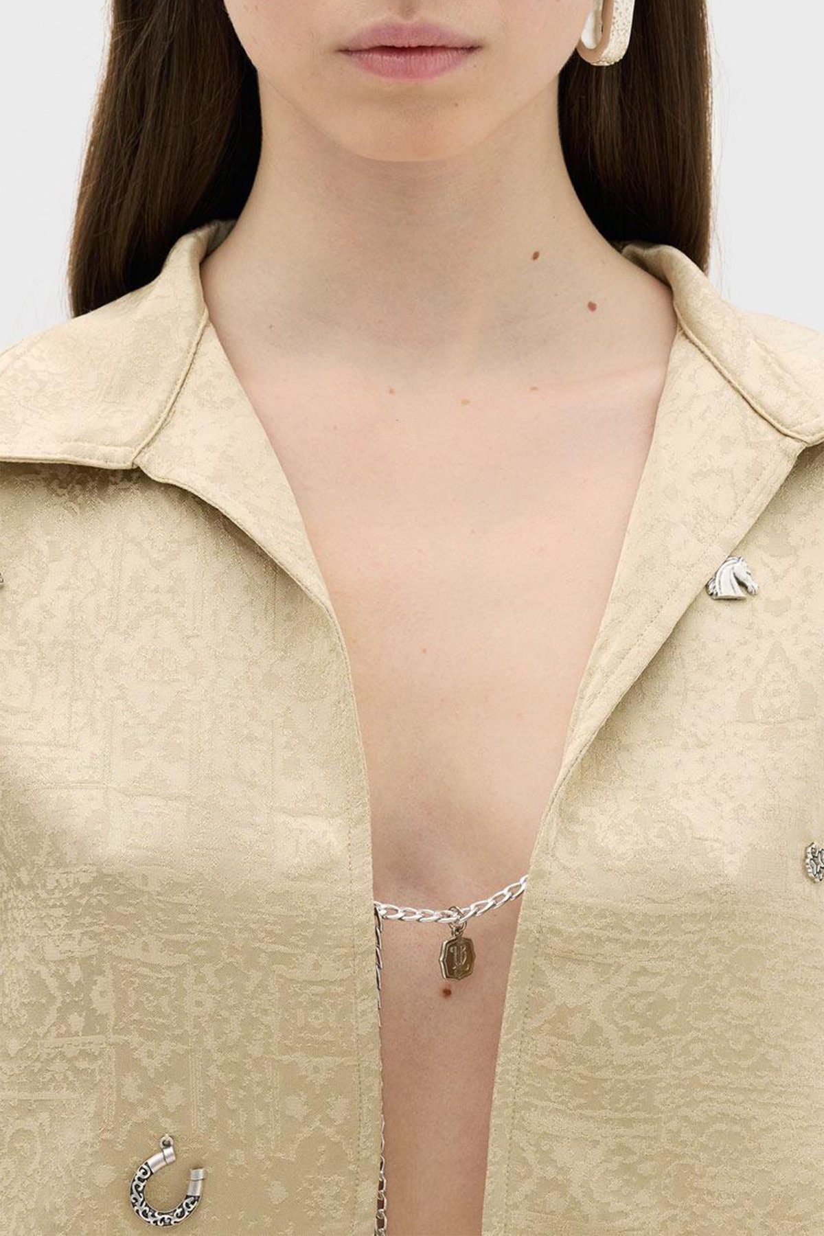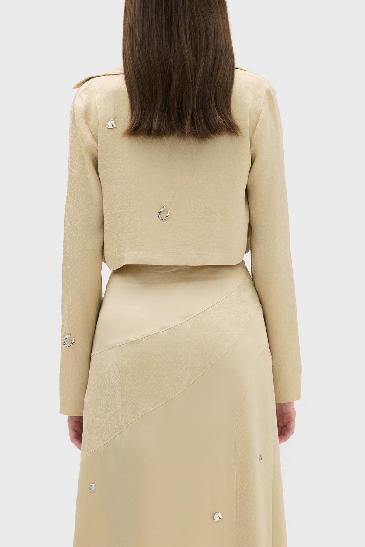 Jakarlı Zincir Detaylı Rahat Kesim Crop Bayan Gömlek Ceket LB23SSHOEFUSH-101 BEJ