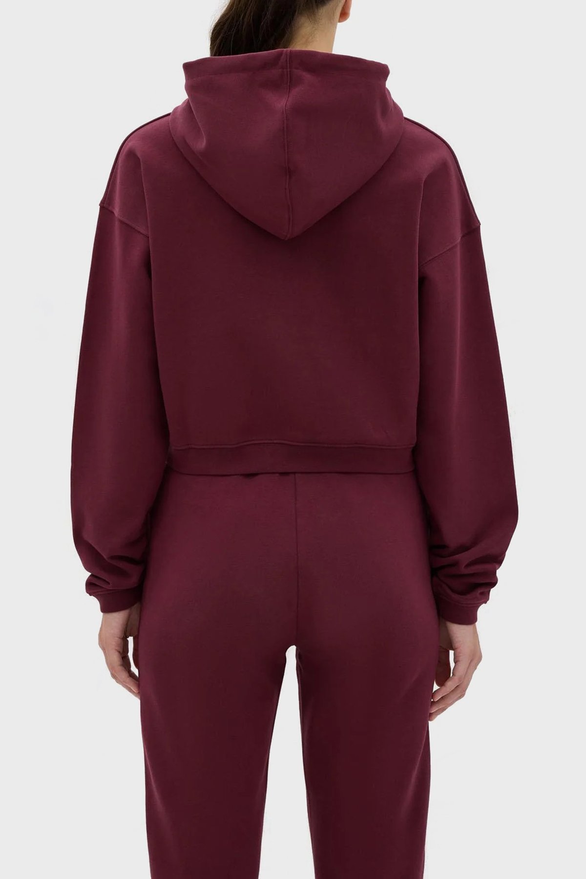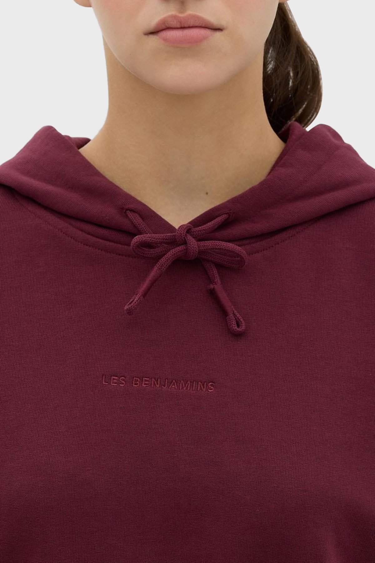 Kapüşonlu % 100 Pamuk Crop Fit Bayan Sweat LB23FWESSFUHD-301 BORDO