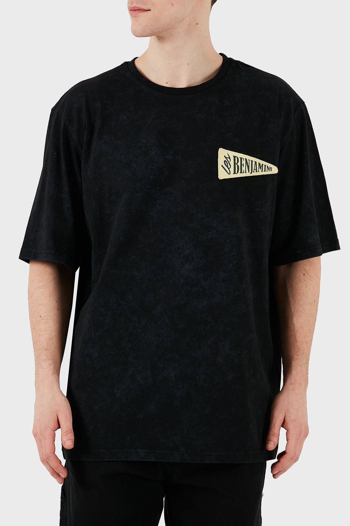 Logo Baskılı % 100 Pamuk Oversize Fit Bisiklet Yaka Erkek T Shirt LB25SSUNLMUOT-023 SİYAH