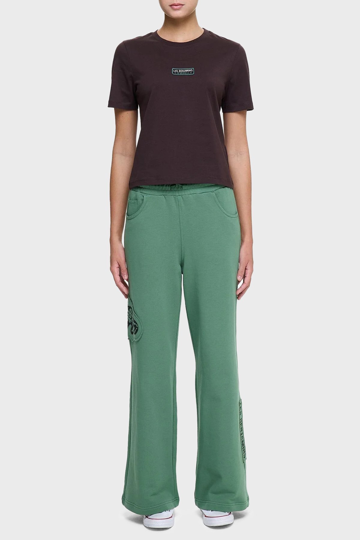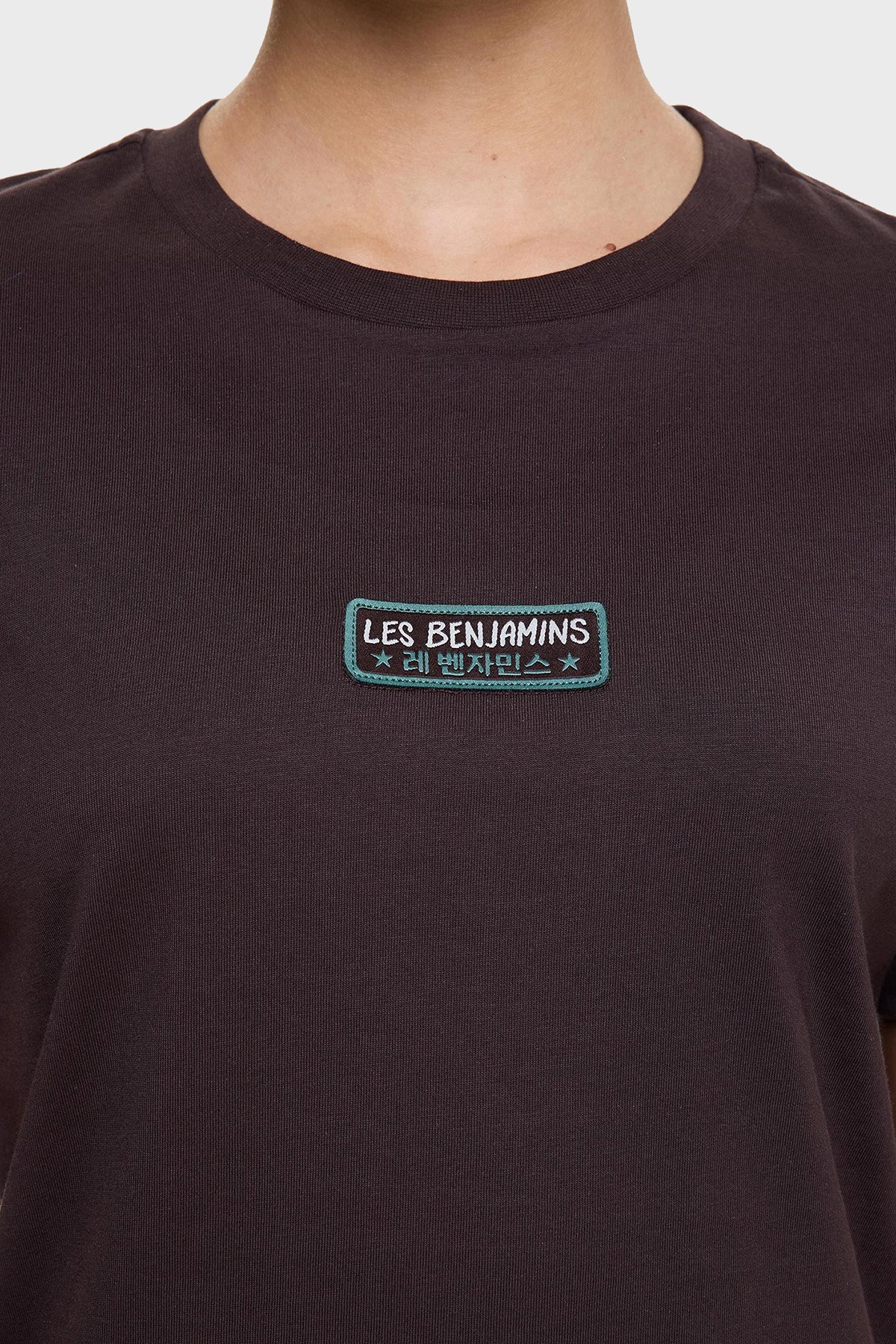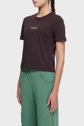 Logolu % 100 Pamuk Regular Fit Bisiklet Yaka Bayan T Shirt LB25SSUNLFUTS-006 KAHVE