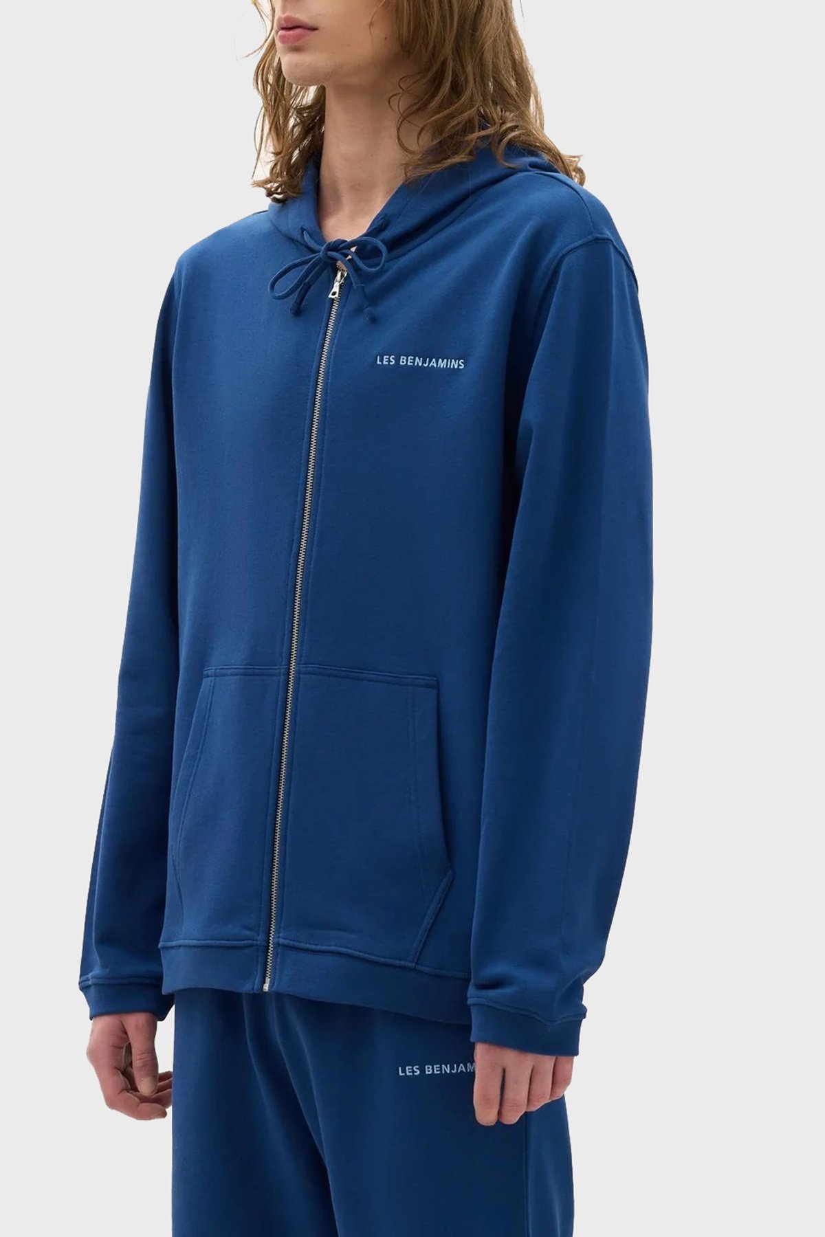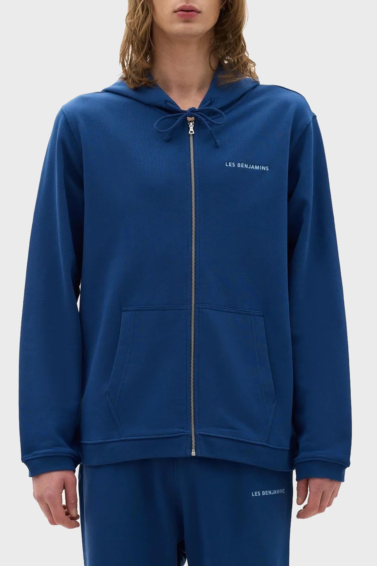 Logolu Kapüşonlu Fermuarlı Pamuklu Regular Fit Erkek Sweat LB21SSCORMUZH-002 LACİVERT