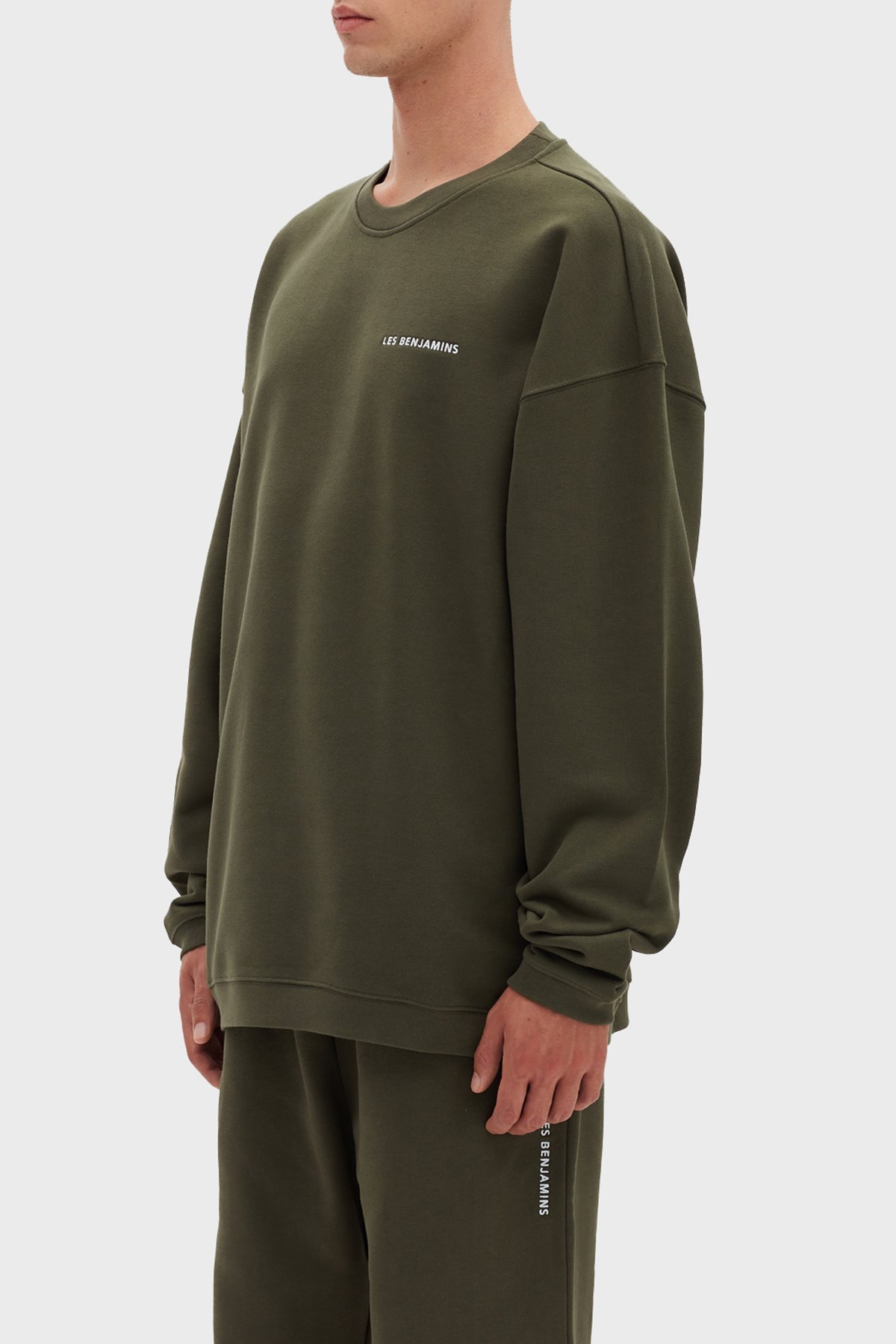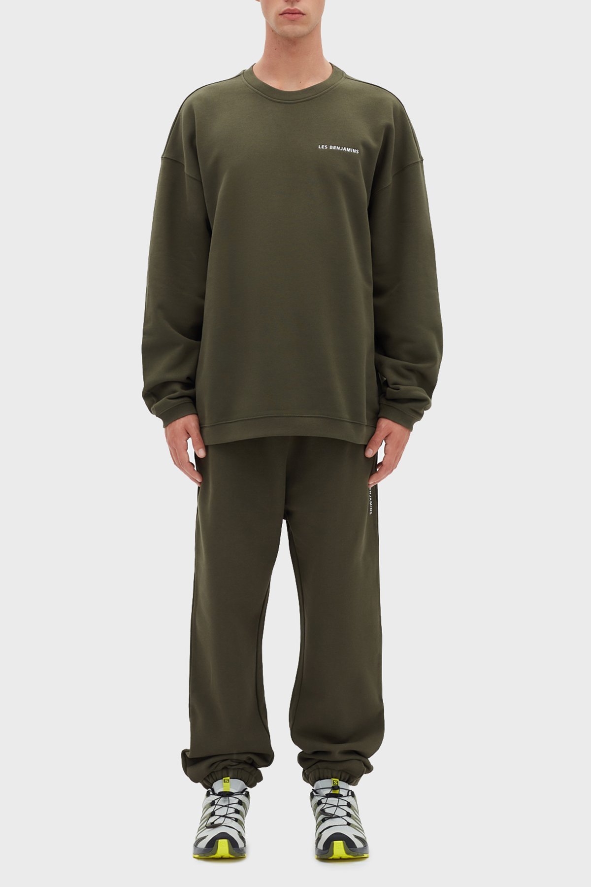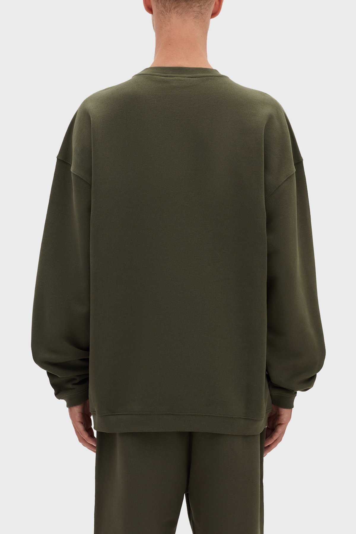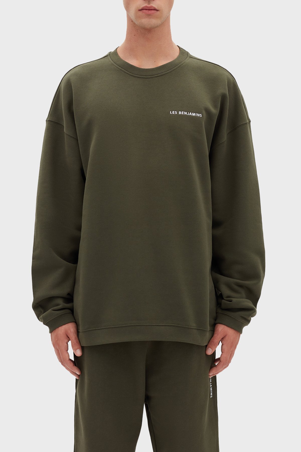 Logolu Oversize Bisiklet Yaka % 100 Pamuk Erkek Sweat LB22FWESSMUSW-302 HAKİ