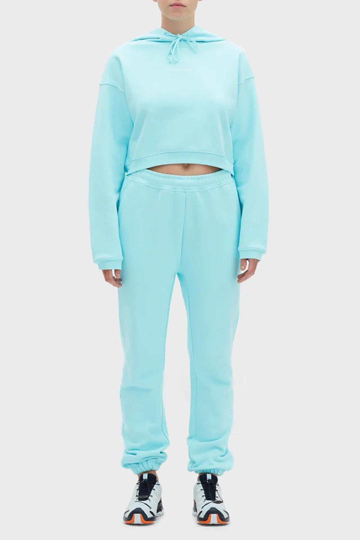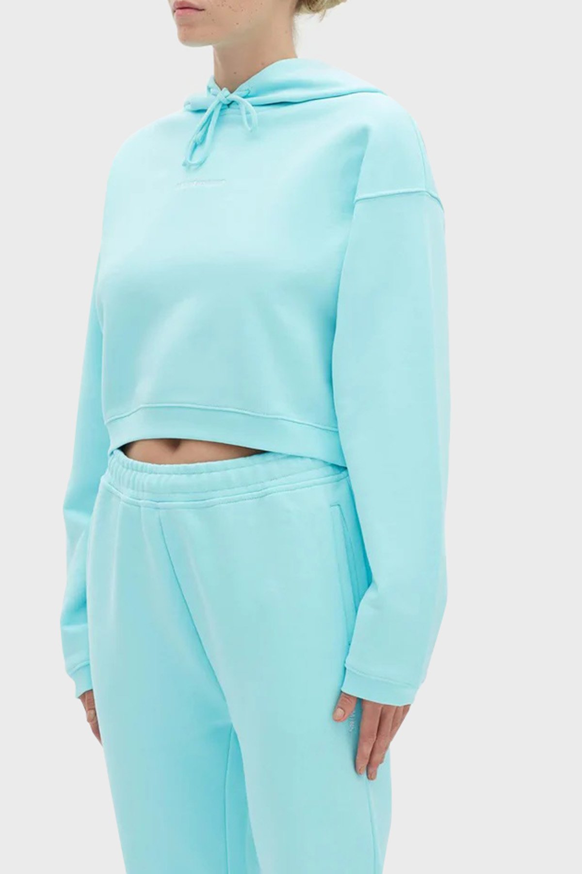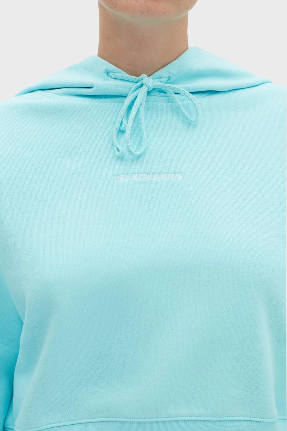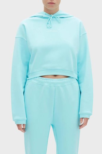 Logolu Regular Fit Kapüşonlu % 100 Pamuk Crop Bayan Sweat LB22FWESSFUHD-305 TURKUAZ