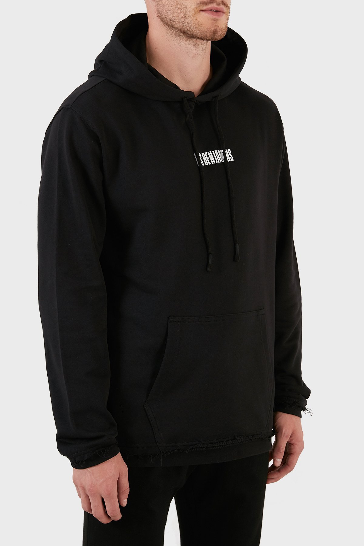 Logolu Sırt Baskılı Kanguru Cepli Kapüşonlu Relaxed Fit Erkek Sweat LB22FWGASMUHD-008 SİYAH
