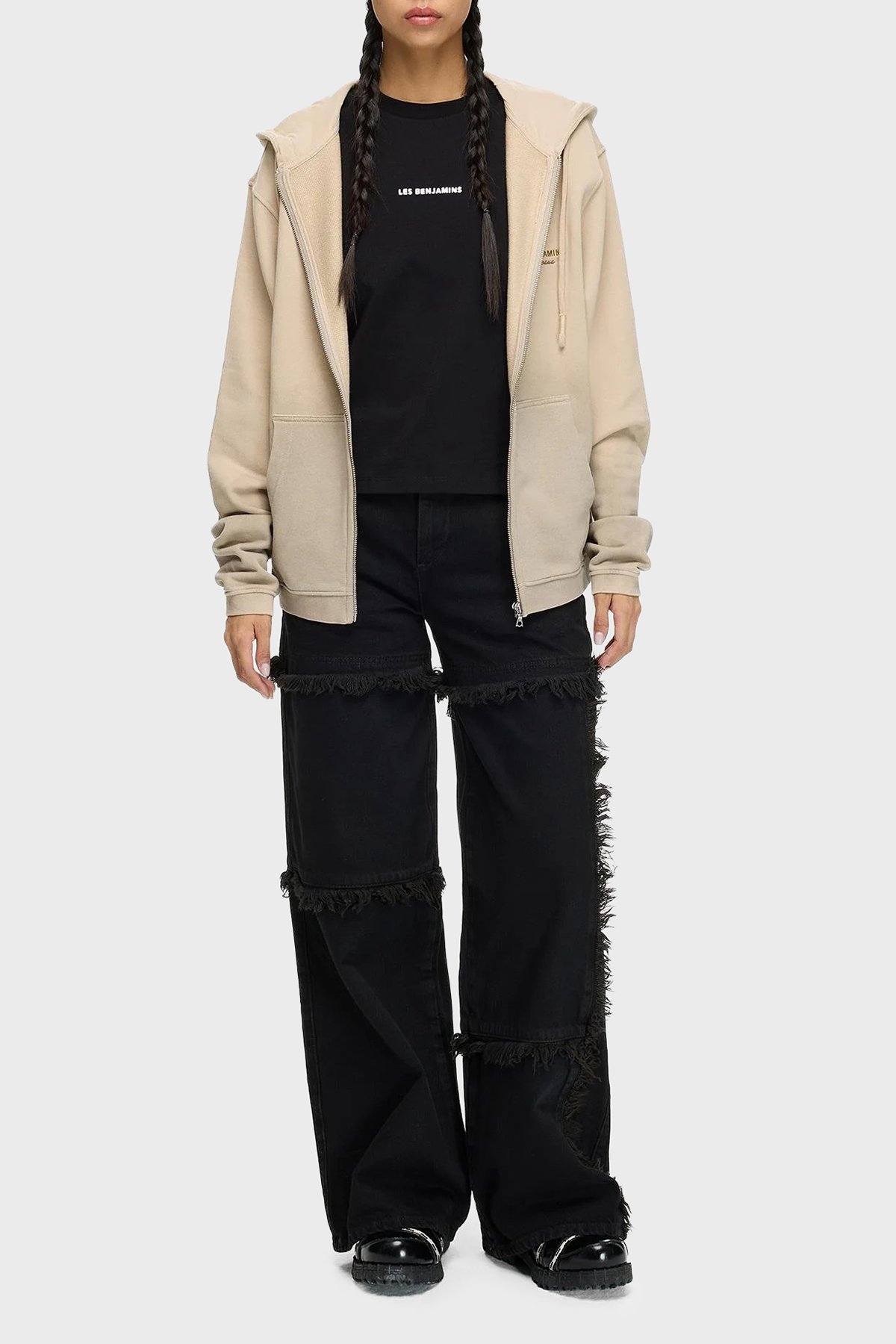 Logolu Sırt Detaylı Pamuklu Regular Fit Kapüşonlu Bayan Sweat LB25FWTURFUZH-001 BEJ