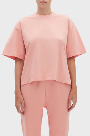 Oversize Bisiklet Yaka % 100 Pamuk Cropped Bayan T Shirt LB22FWESSFUOT-306 CORAL