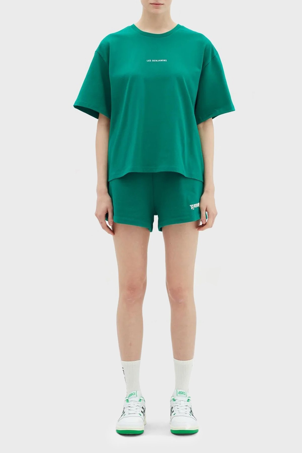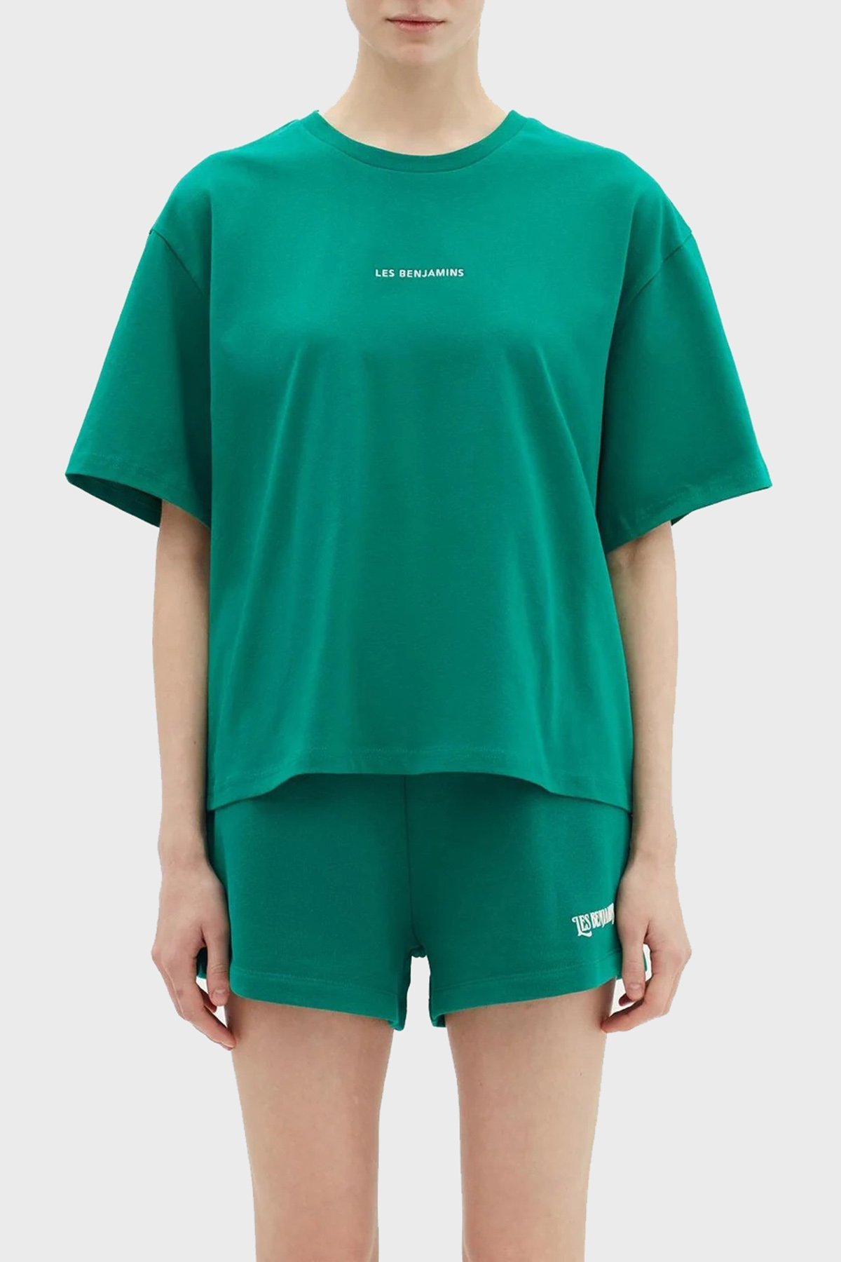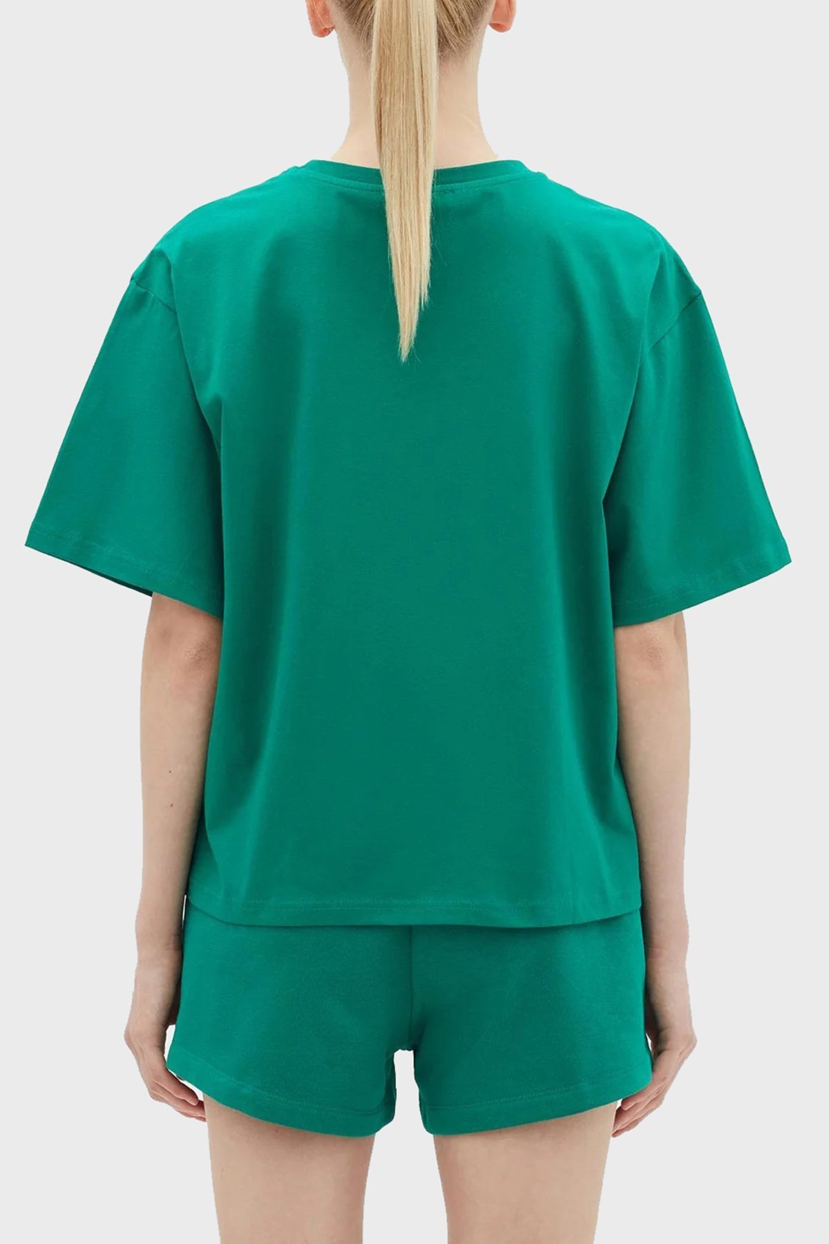 Pamuklu Bisiklet Yaka Boxy Fit Bayan T Shirt LB23SSHOEFUTS-020 YEŞİL