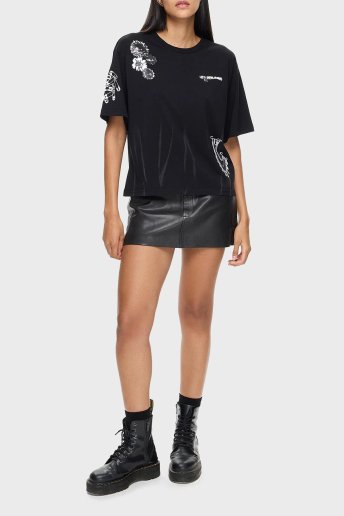 Pamuklu Boxy Fit Bayan T Shirt LB24FWEAPFUTS-007 SİYAH