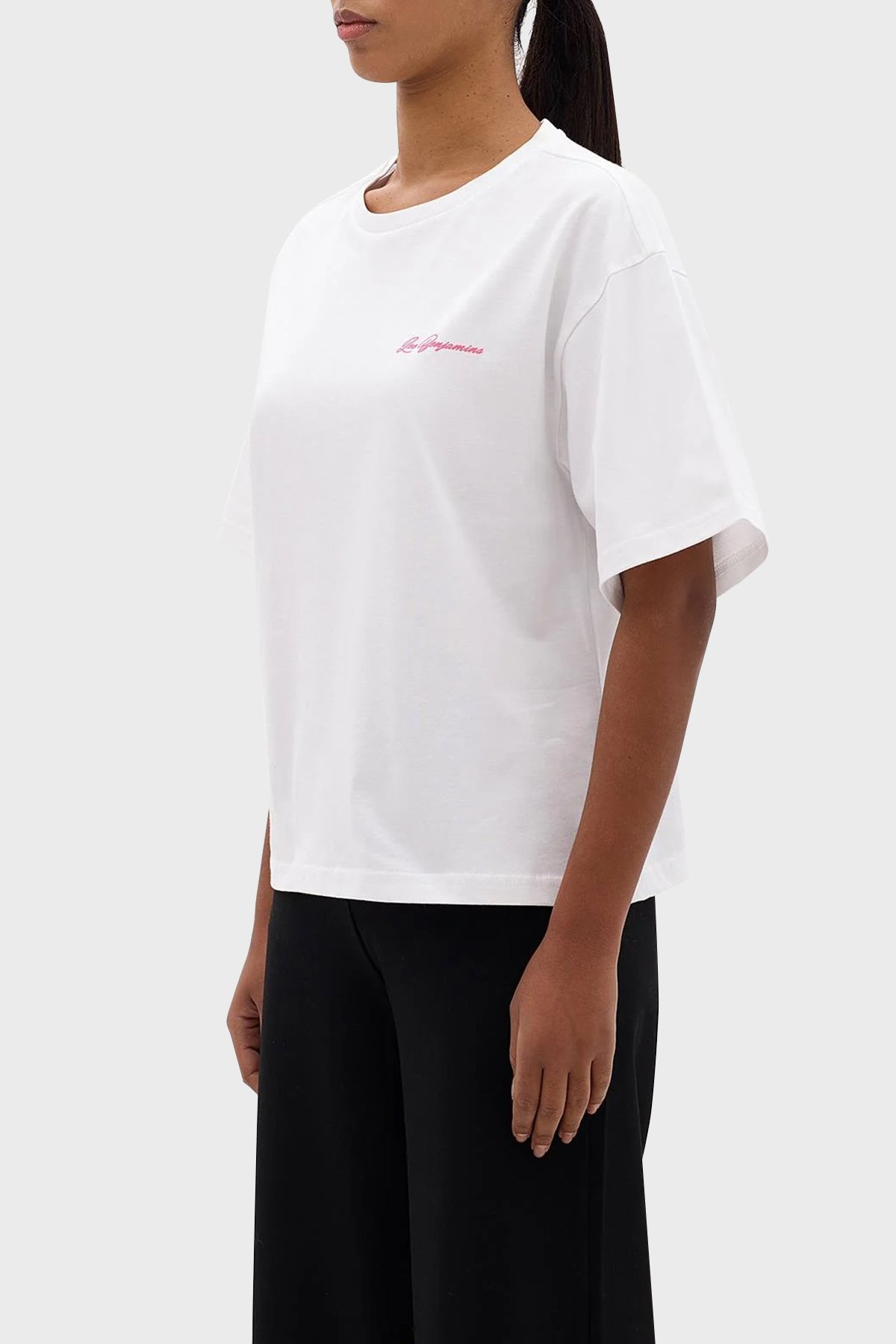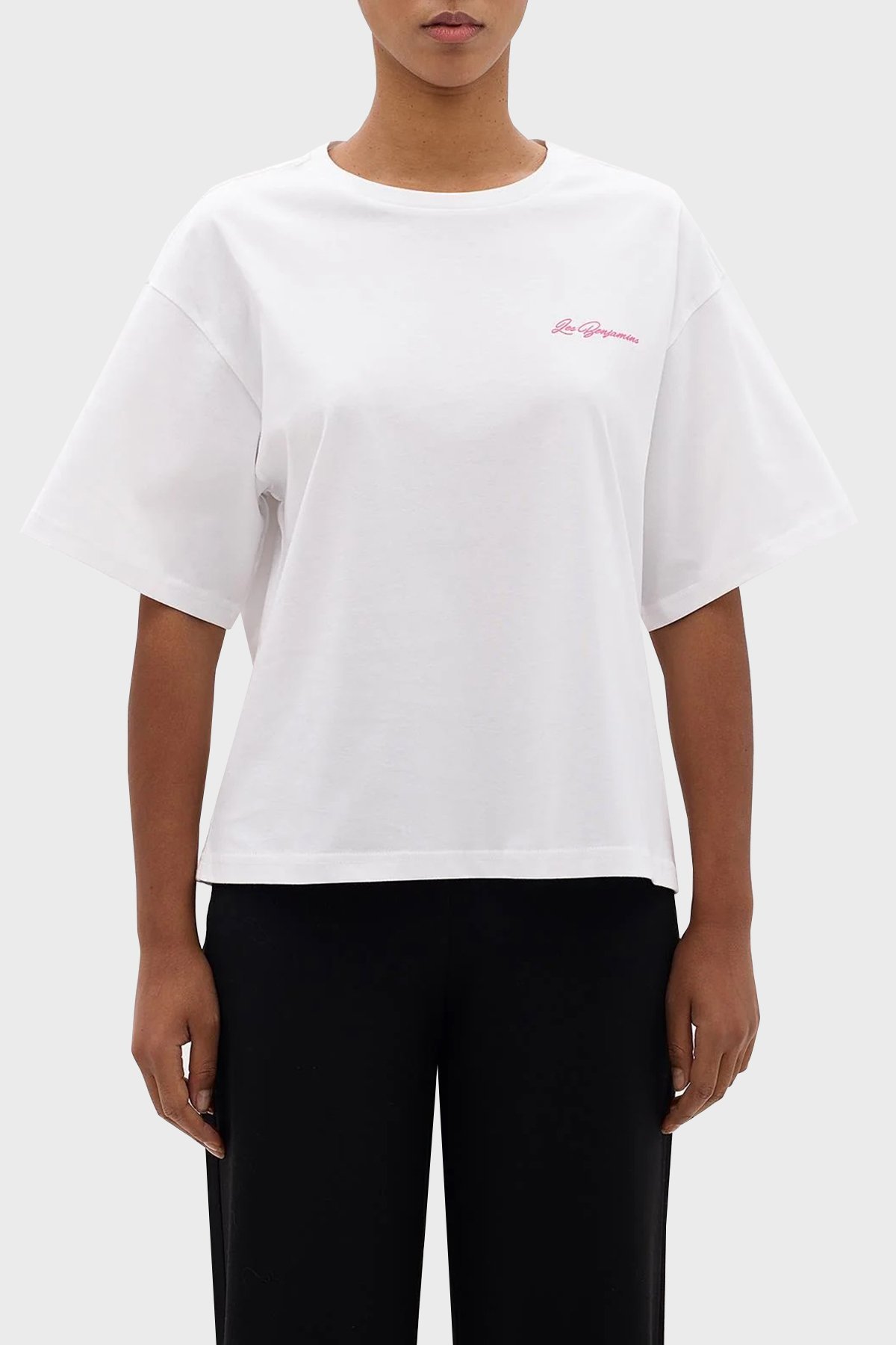 Pamuklu Boxy Fit Bisiklet Yaka Bayan T Shirt LB24SSKISFUTS-013 BEYAZ