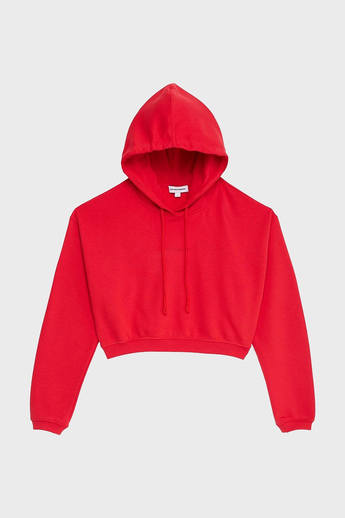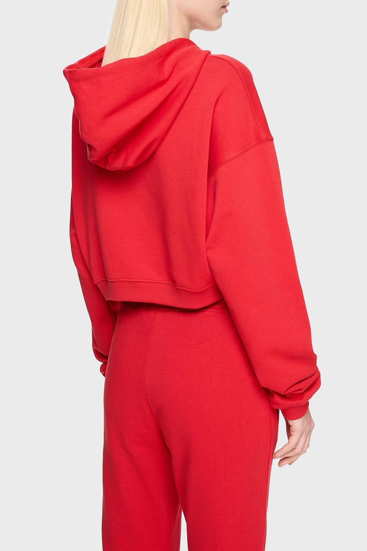 Pamuklu Crop Fit Kapüşonlu Bayan Sweat LB24FWESSFUHD-302 KIRMIZI