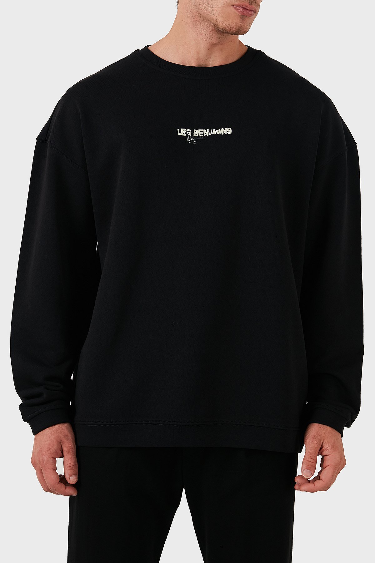 Pamuklu Logolu Regular Fit Bisiklet Yaka Erkek Sweat LB24FWEAPMUSW-001 SİYAH