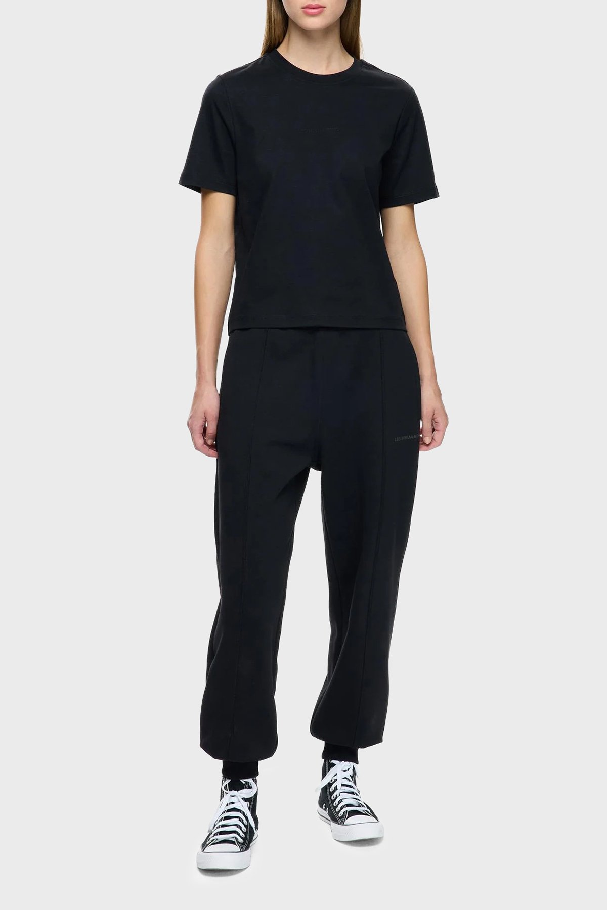 Pamuklu Regular Fit Bisiklet Yaka Logolu Bayan T Shirt LB25FWCLAFUTS-408 SİYAH