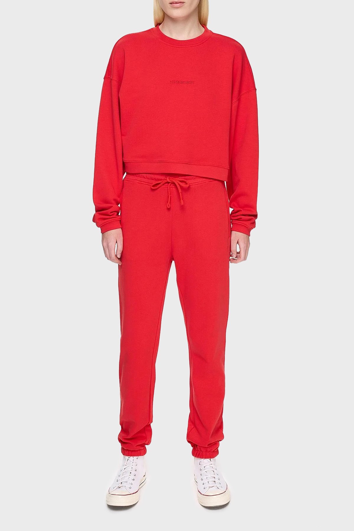 Pamuklu Regular Fit Cepli Jogger Spor Bayan Pantolon LB24FWESSFUSP-302 KIRMIZI