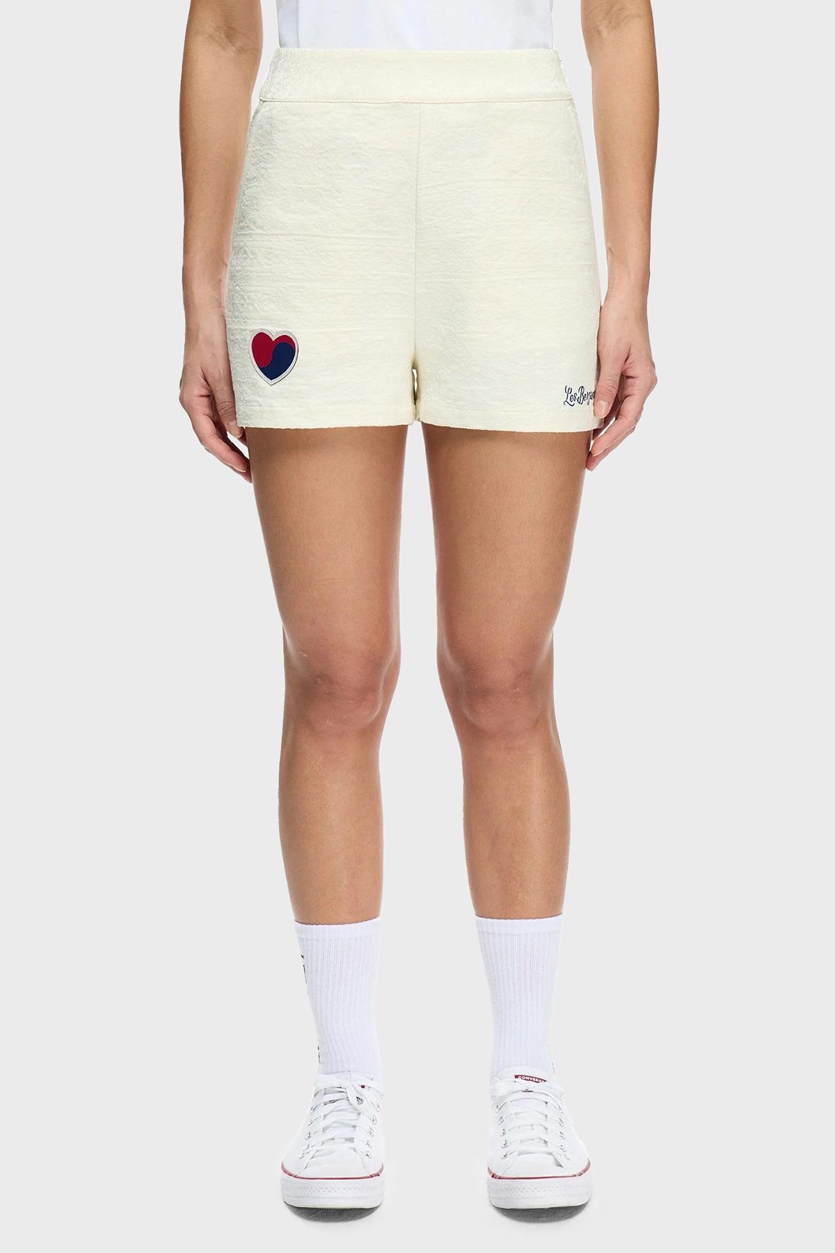 Pamuklu Regular Fit Yüksek Bel Jakarlı Bayan Short LB25SSUNLFUSO-007 EKRU