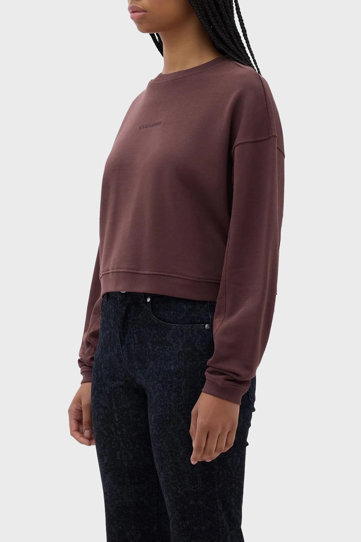 Pamuklu Relaxed Fit Crop Bayan Sweat LB23FWFRWFUSW-003 KAHVE