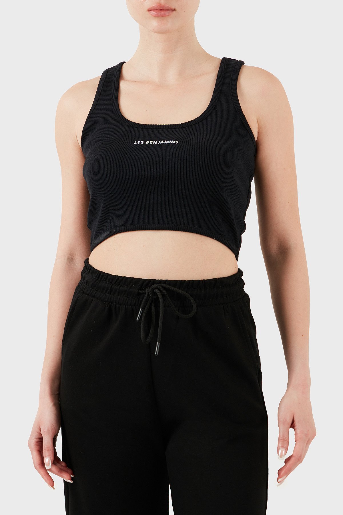 Pamuklu Slim Fit Kare Yaka Logolu Bayan Top LBNOOSESSFUTN-307 SİYAH