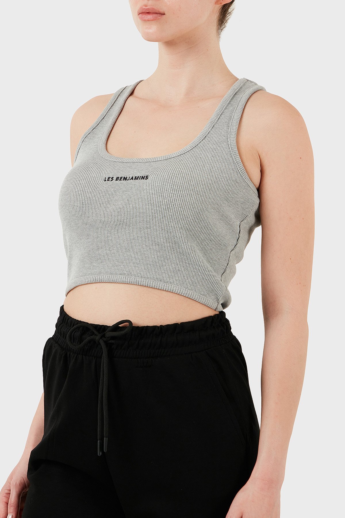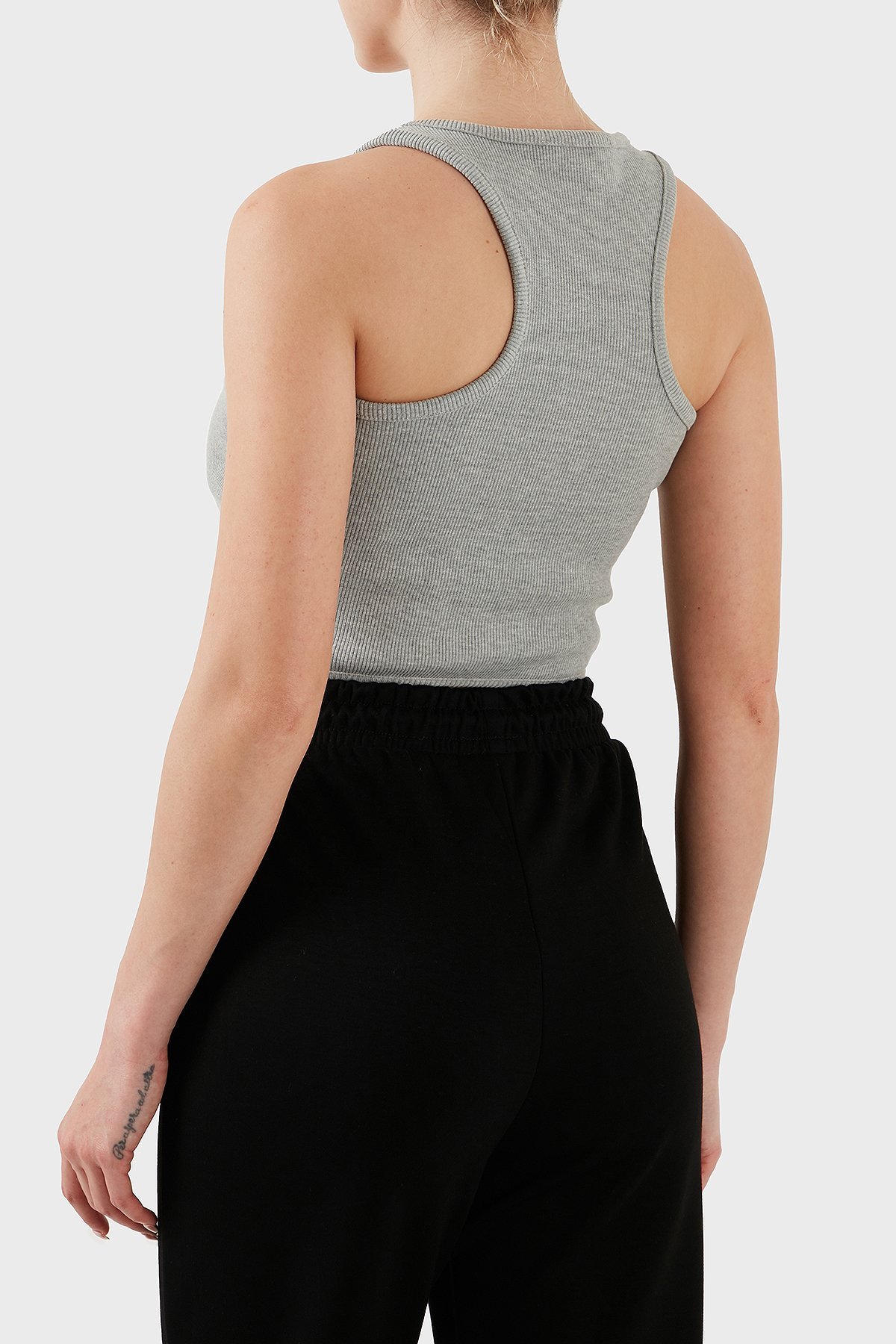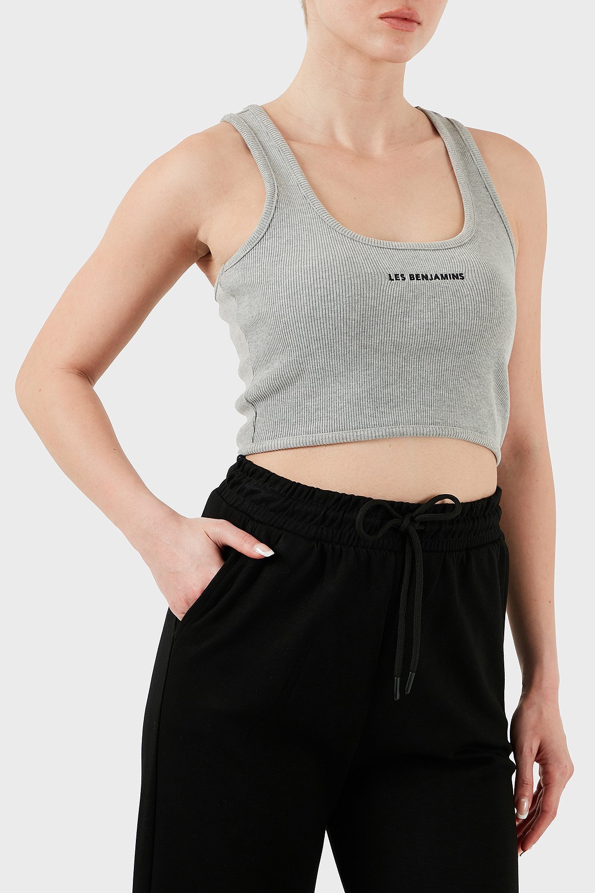 Pamuklu Slim Fit Kare Yaka Logolu Bayan Top LBNOOSESSFUTN-308 GRİ MELANJ