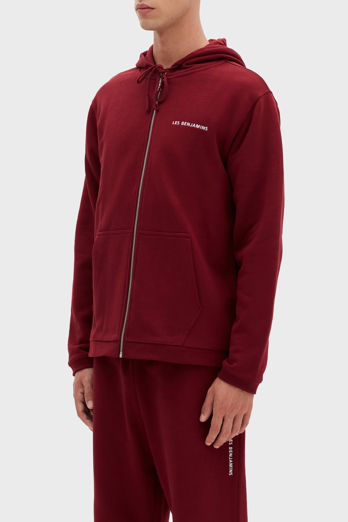 Regular Fit Kapüşonlu Fermuarlı Pamuklu Erkek Sweat LB22FWESSMUZH-301 BORDO