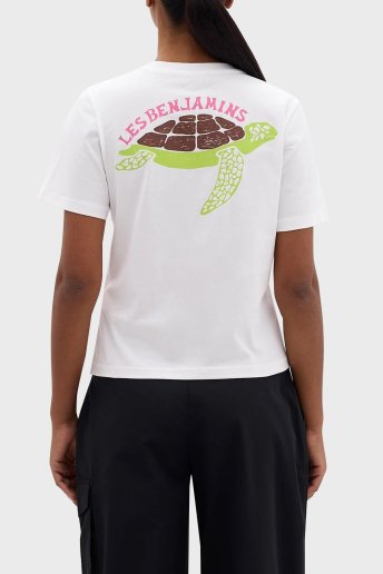Sırt Baskılı Pamuklu Bisiklet Yaka Regular Fit Bayan T Shirt LB24SSKISFUTS-023 BEYAZ