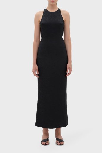 Sırt Dekolteli Jakarlı Maxi Bayan Elbise LB23FWFRWFUDR-010 SİYAH