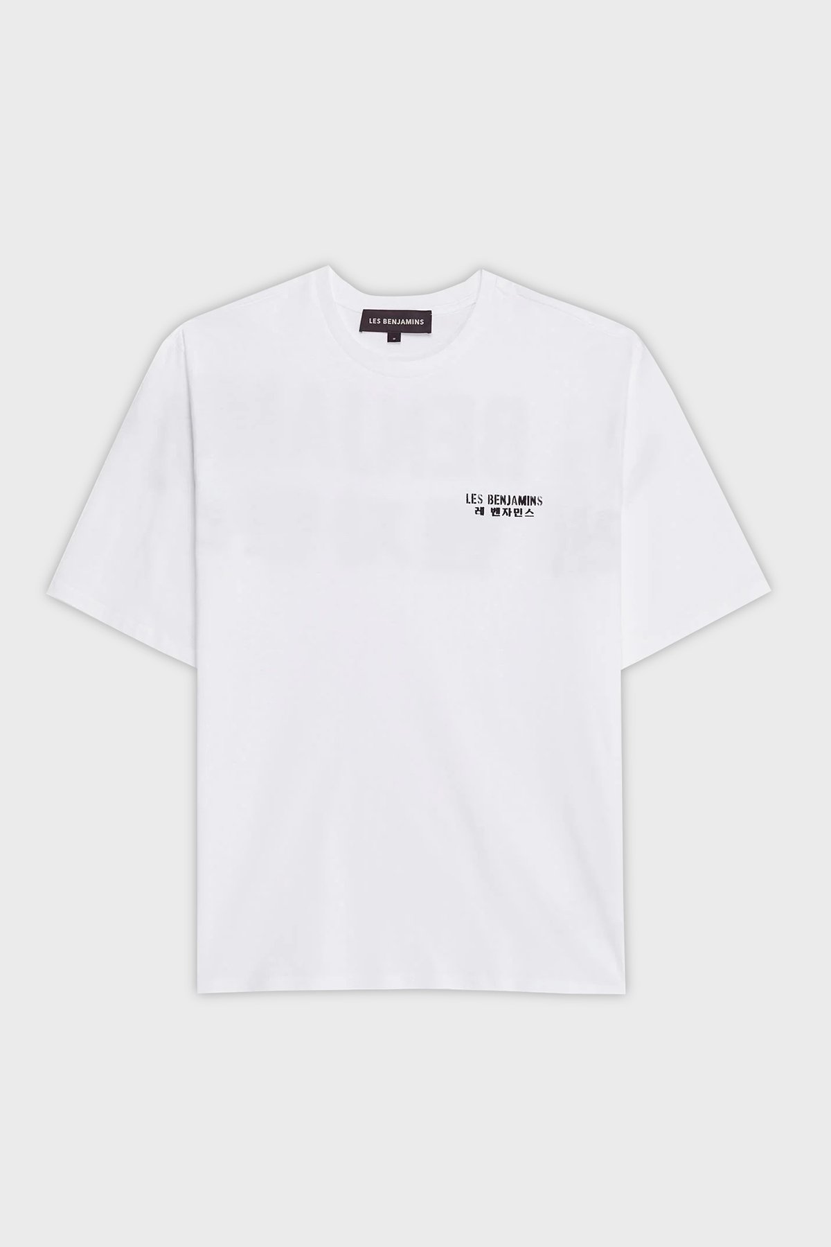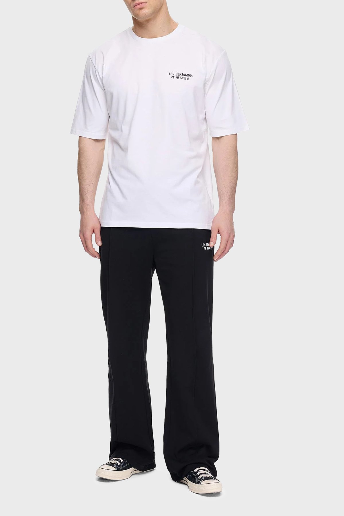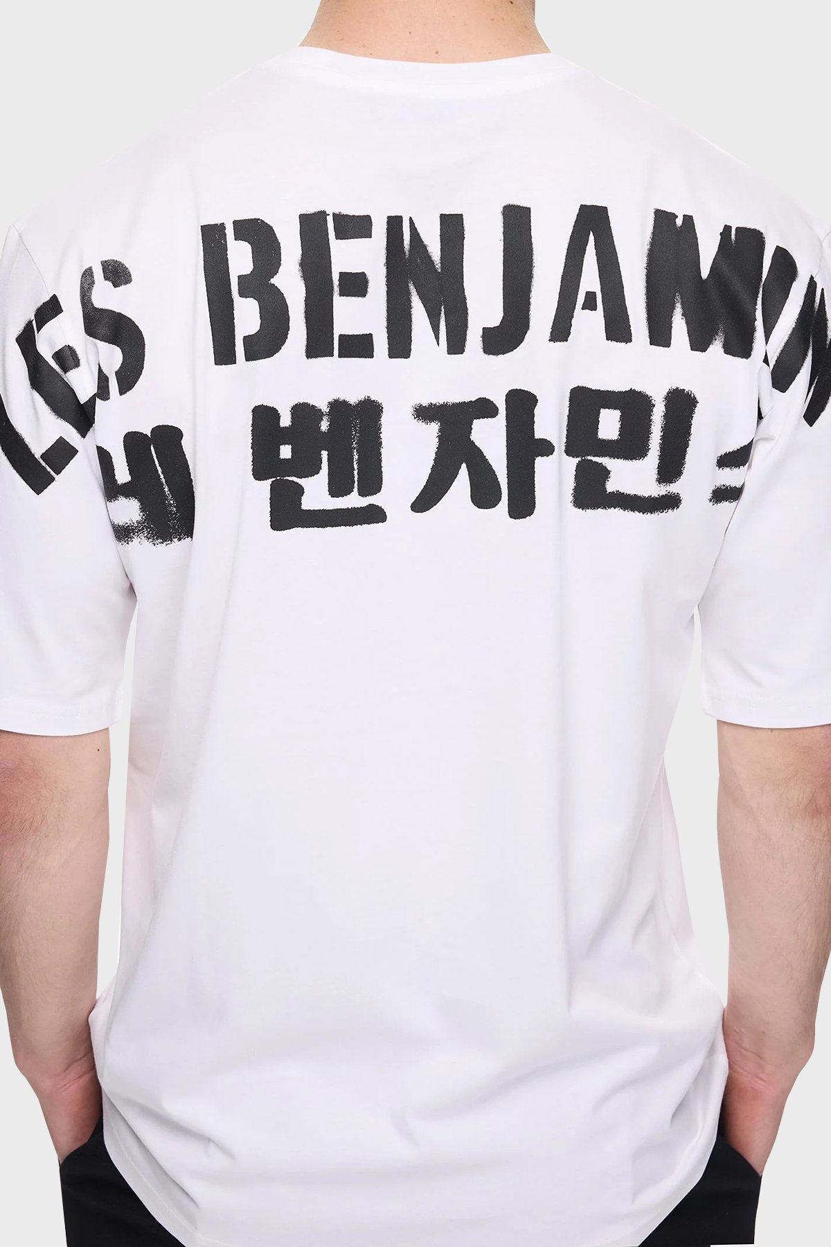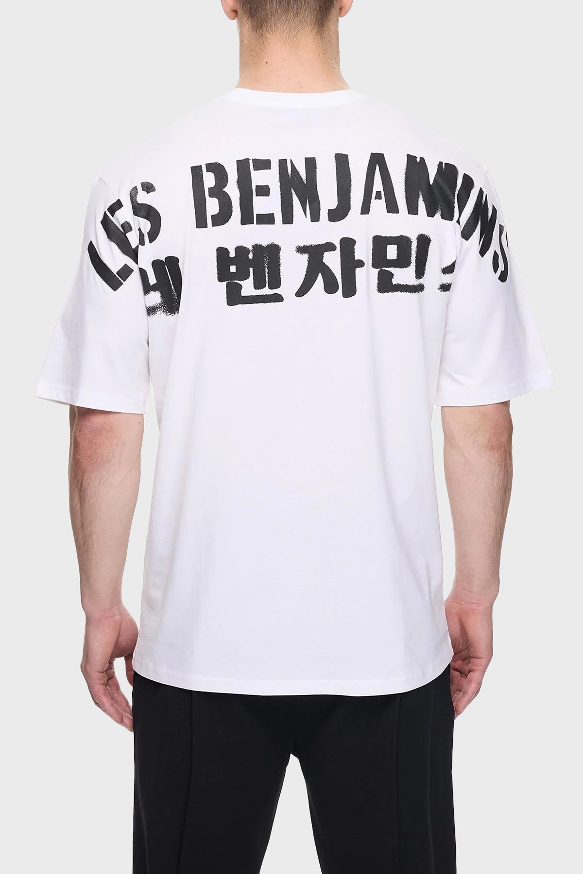 Sırt Detaylı % 100 Pamuk Oversize Bisiklet Yaka Erkek T Shirt LB25SSUNLMUOT-006 BEYAZ