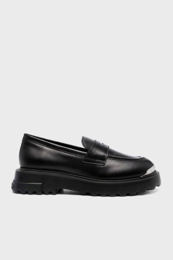 Deri Logolu Yüksek Taban Loafer Bayan Ayakkabı JA10224G1LIA0000 SİYAH