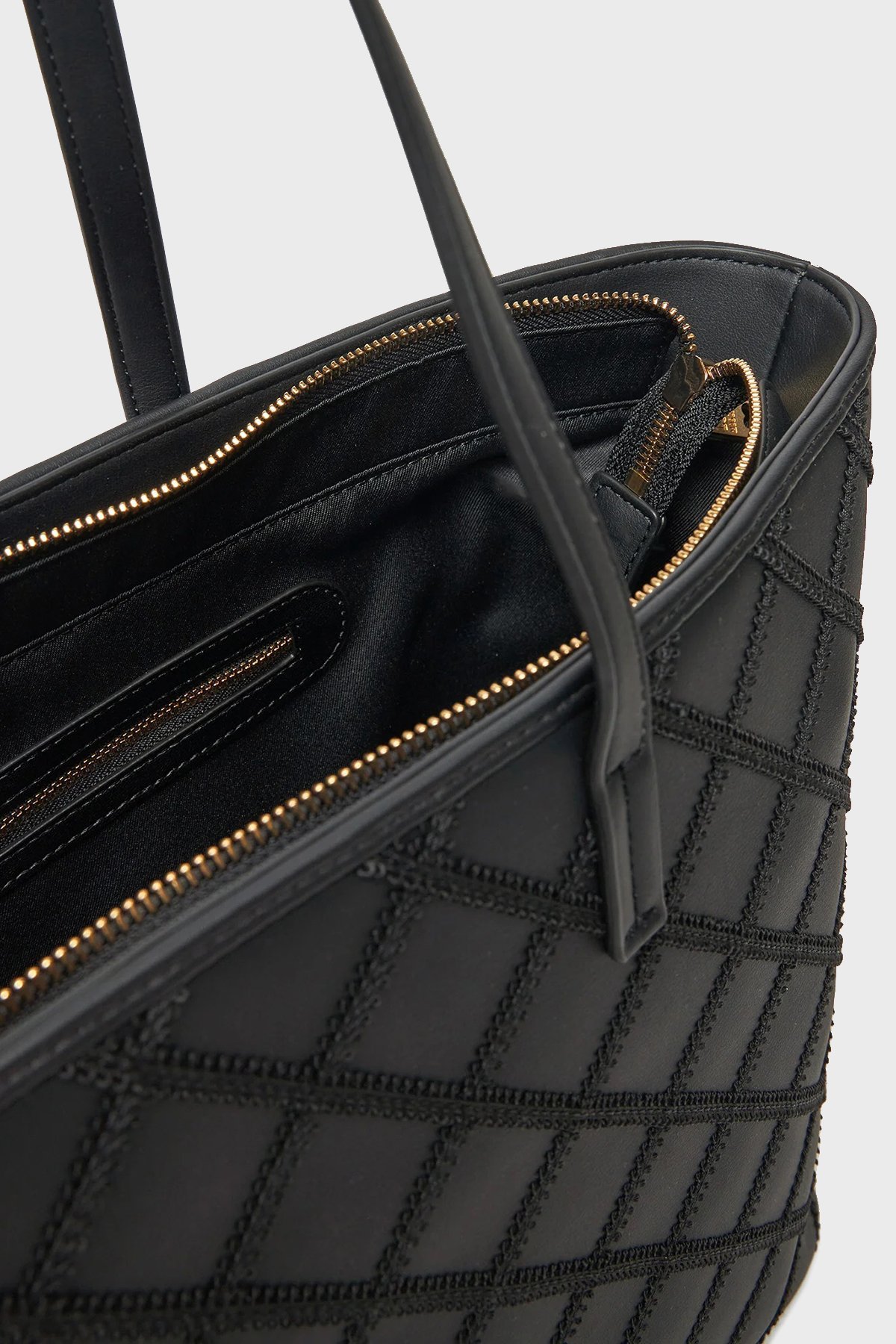 Dikiş Detaylı Logolu Sabit Omuz Askılı Büyük Bayan Çanta JC4307PP0LKK100A SİYAH