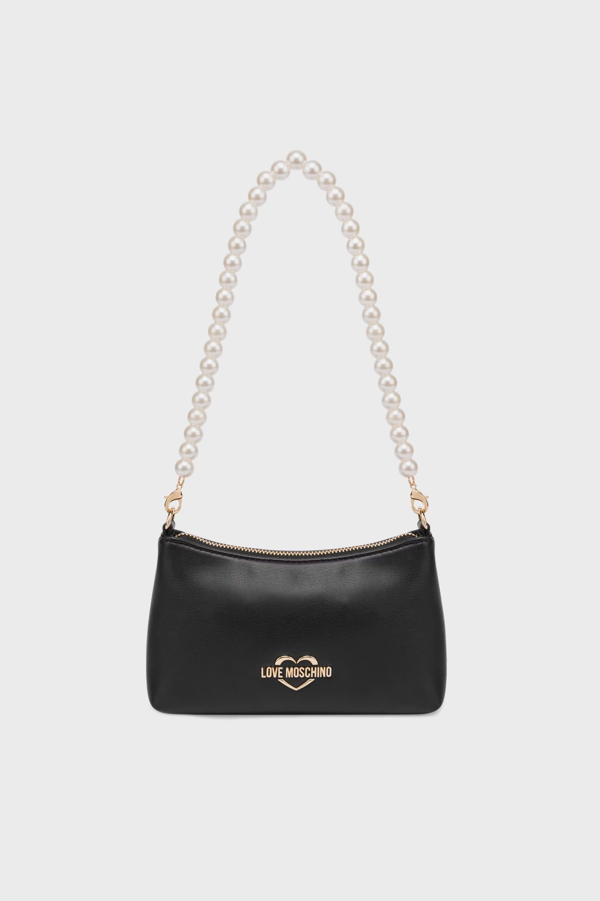Logolu Çıkarılabilir İnci Askılı Fermuarlı Bayan Çanta JC4351PP0LKT0000 SİYAH