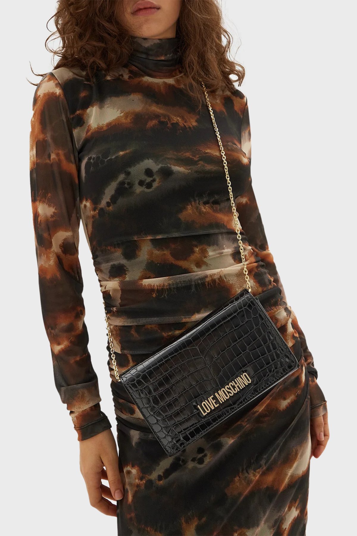 Logolu Zincir Askılı Krokodil Dokulu Bayan Çanta JC4079PP0LKJ0000 SİYAH
