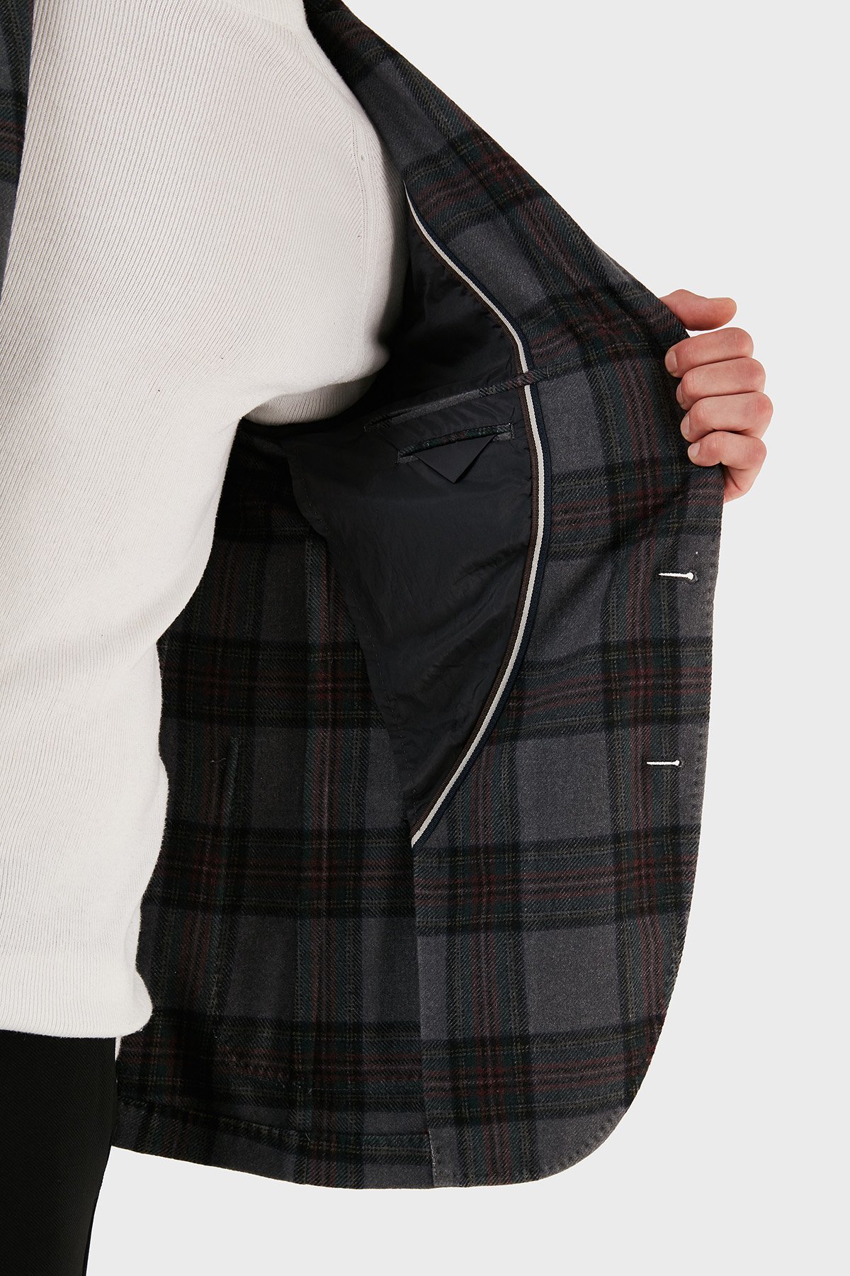 Ekoseli Blazer Erkek Ceket ZOX1910G807TW151634C98 GRİ