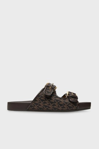 Logo Baskılı Çift Bantlı Kemerli 40T5BYFS1D200 Bayan Terlik 40T5BYFS1D 200 KAHVE
