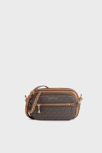 Logolu Ayrılabilir Ön Bölmeli Zincir Askılı Hakiki Deri Bayan Çanta 32R3GJ6C4L 252 KAHVE-TABA