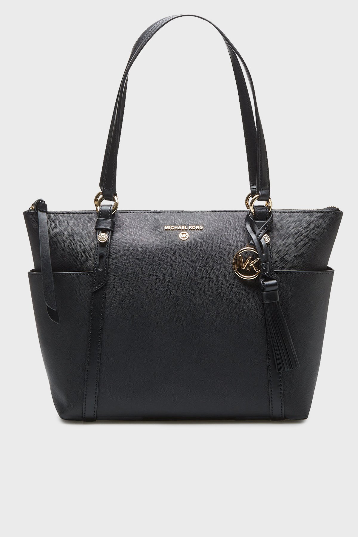 Logolu Fermuarlı Hakiki Deri Sullivan Bayan Çanta 30T0GNXT2L 001 SİYAH
