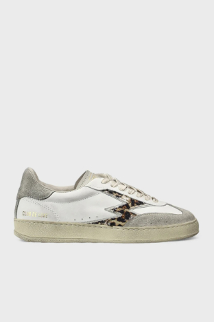 Deri Logolu Leopar ve Süet Detaylı Sneaker Bayan Ayakkabı CL001 BEYAZ