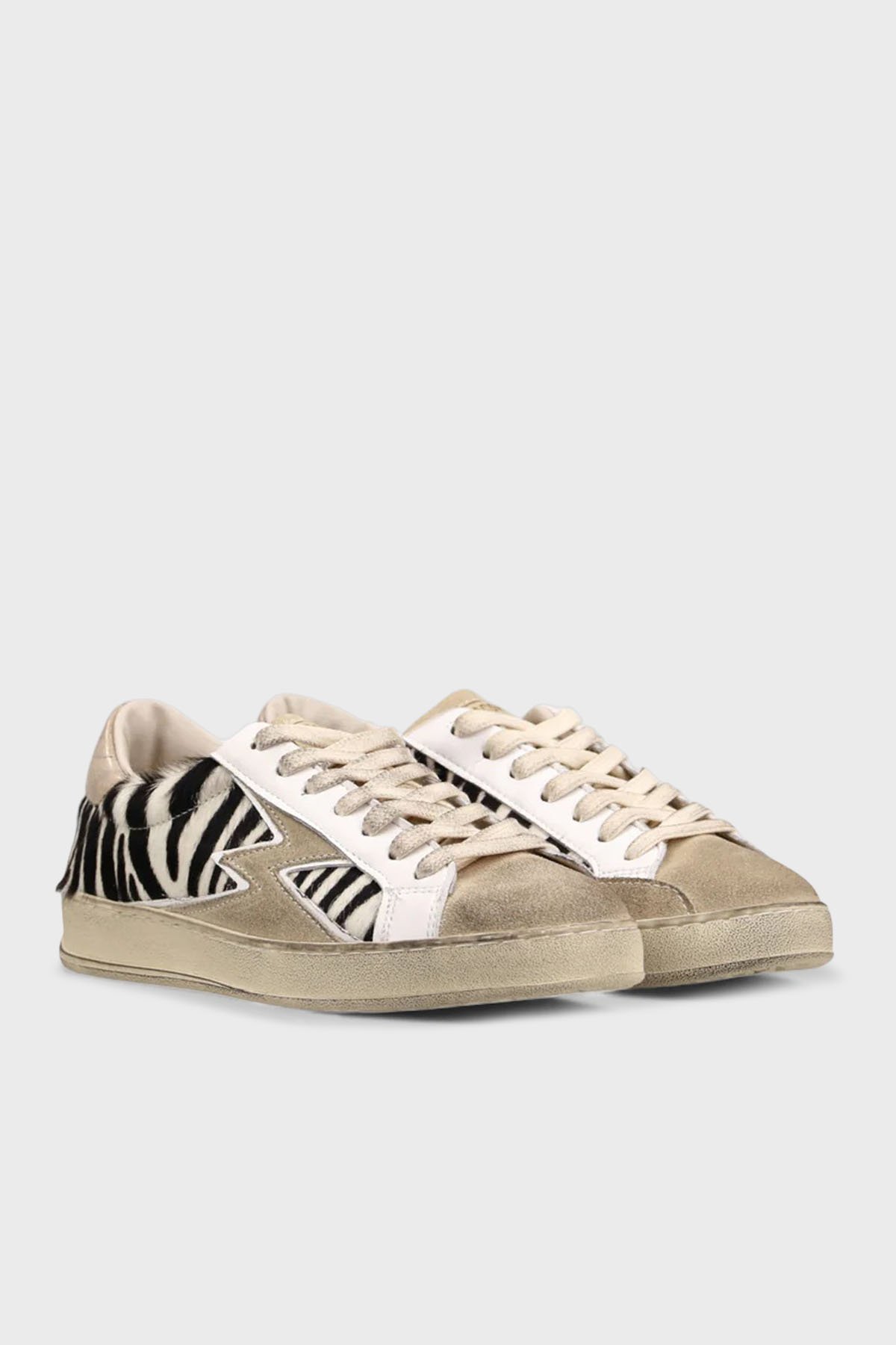 Zebra Desenli Deri Sneaker Bayan Ayakkabı IC136 SİYAH-BEYAZ